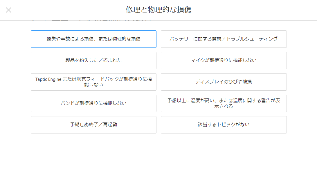 (3)今回の場合、画面が割れたので、「修理と物理的な損傷」を選択。(※)