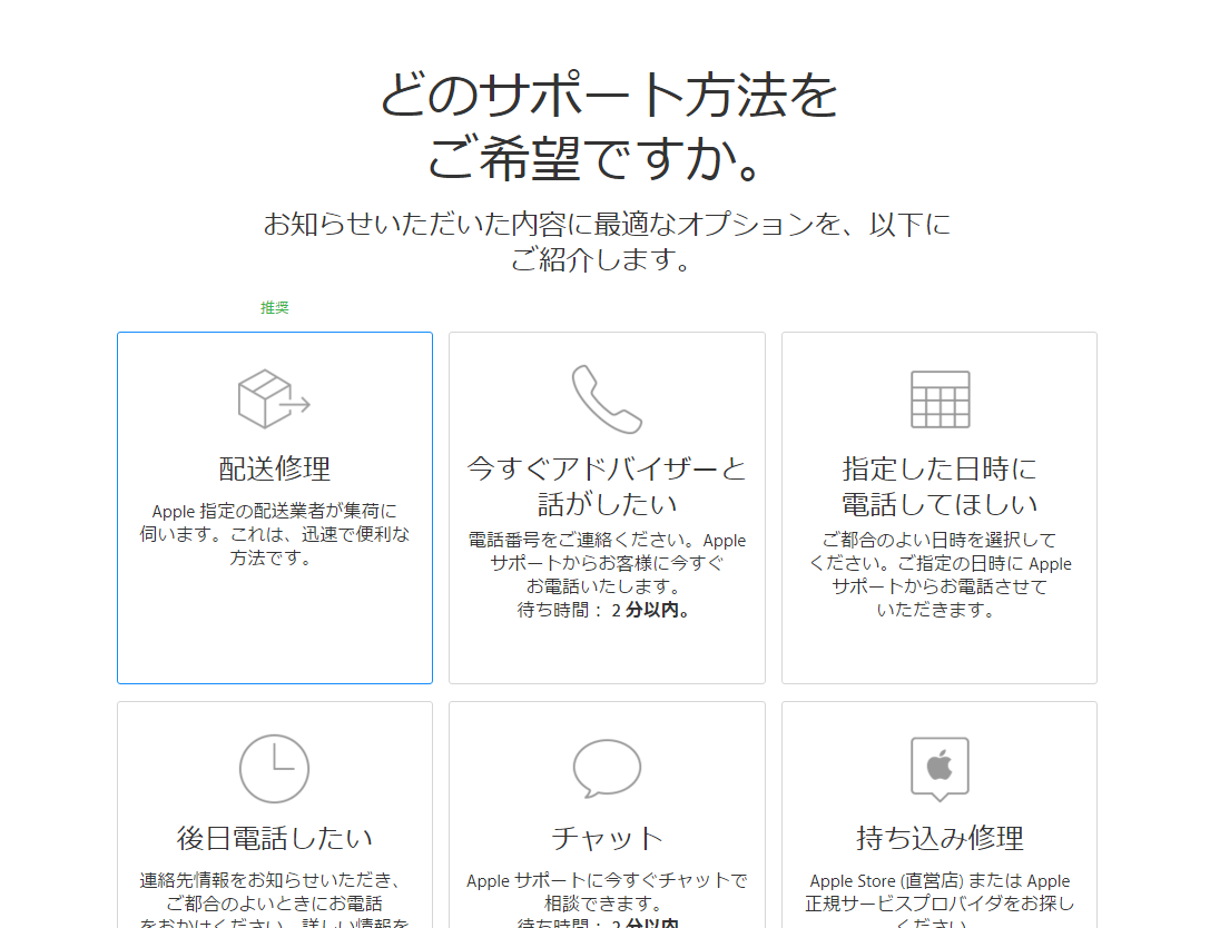 (5)今回は、宅配業者が回収に来てくれる「配送修理」を選択。