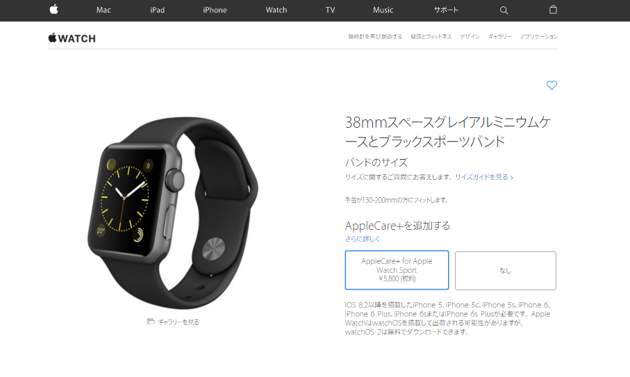 Apple Care+for Apple Watch Sport加入時:1万5336円(税込)
