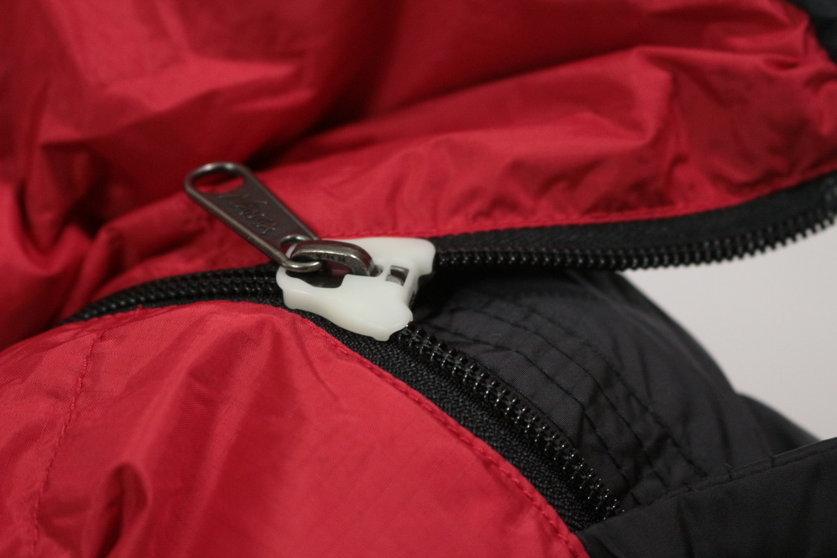 ちなみに、ファスナータブの根元には蓄光樹脂の特殊パーツが付いていて、他社製のファスナーよりも目立ち、そしてかさばりそうに思えます。実はこのファスナー、YKKと共同開発したもので、この特殊パーツのおかげでダウンを包む薄い生地がファスナーに噛まれることがほとんどありません。サッとファスナーを操作できないとイラッとしますし、噛んだ生地をなんとかしようとして破れる危険だってあるわけなので、これはうれしい配慮です。