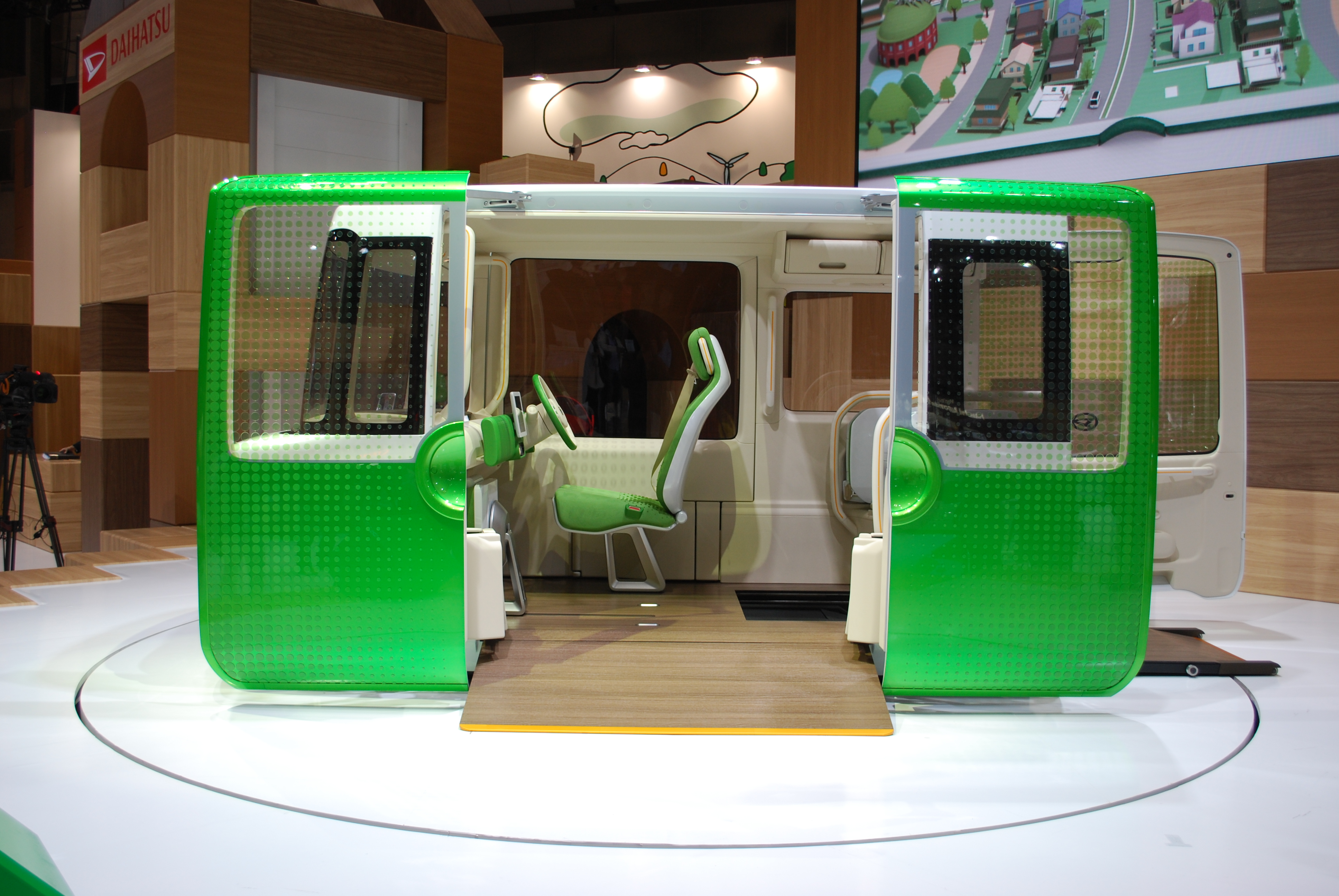 ドアは前後ともスライドドア。リアゲートも横開きの大きなドアになっており、どちらからも乗り降りが可能。ここまで乗り降りにこだわったコンセプトカーは見たことがありません。ダイハツのブースは東4・5・6ホールにあります。