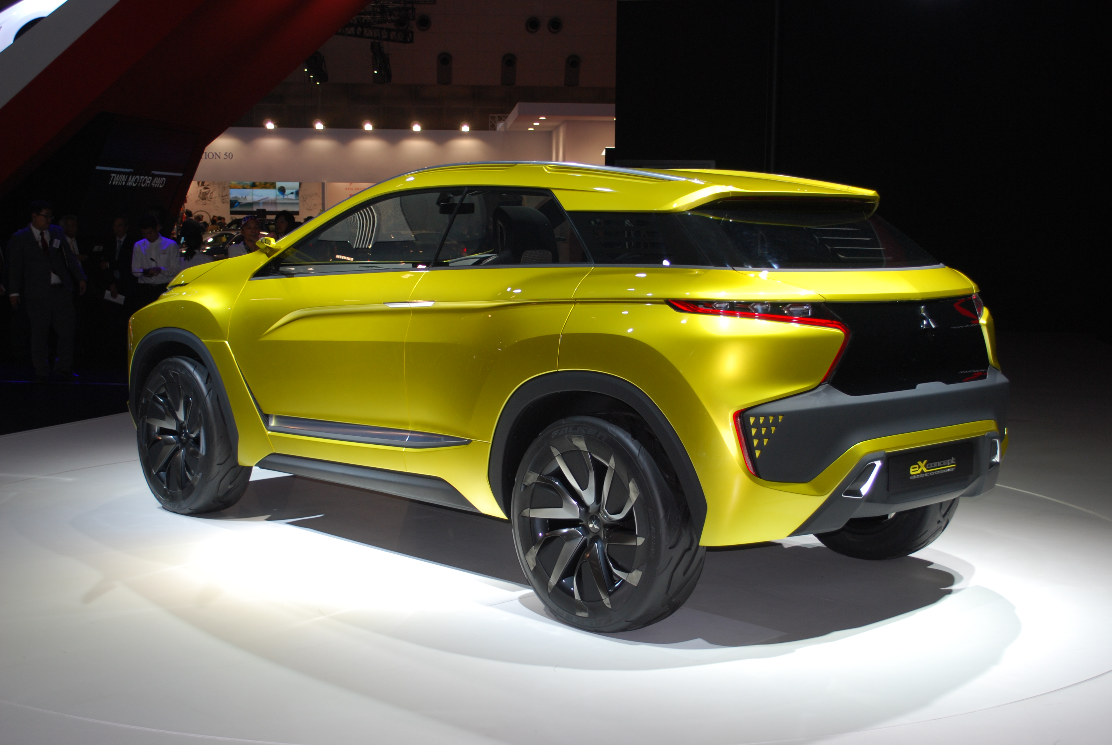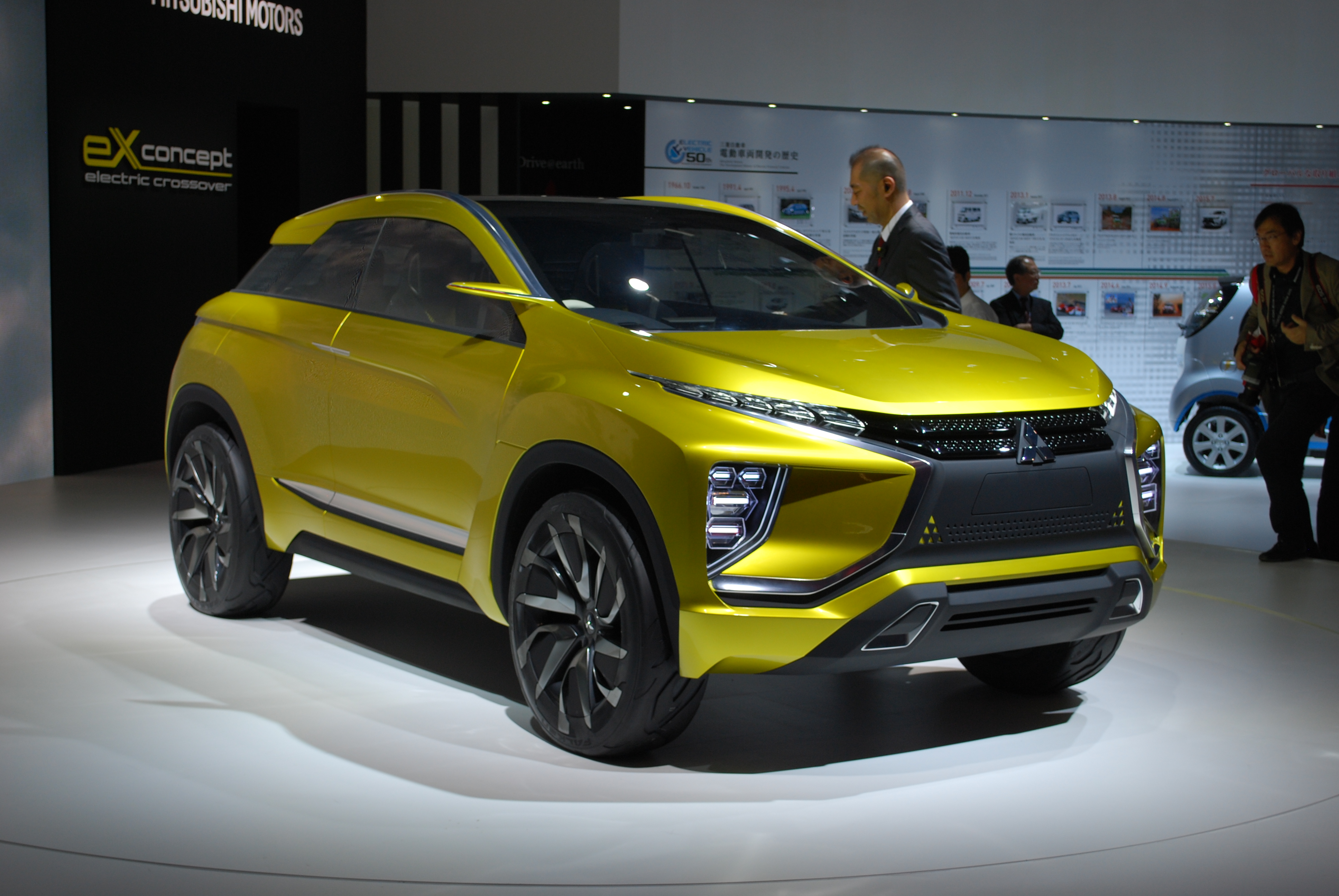 electric crossover。アウトランダーPHEVが好評な三菱は、ワールドプレミアのコンセプトカーにこのようなサブキャッチを付けました。そう、eX Conceptは前後に配された高性能モーターで4輪を駆動させる電気自動車なのです。