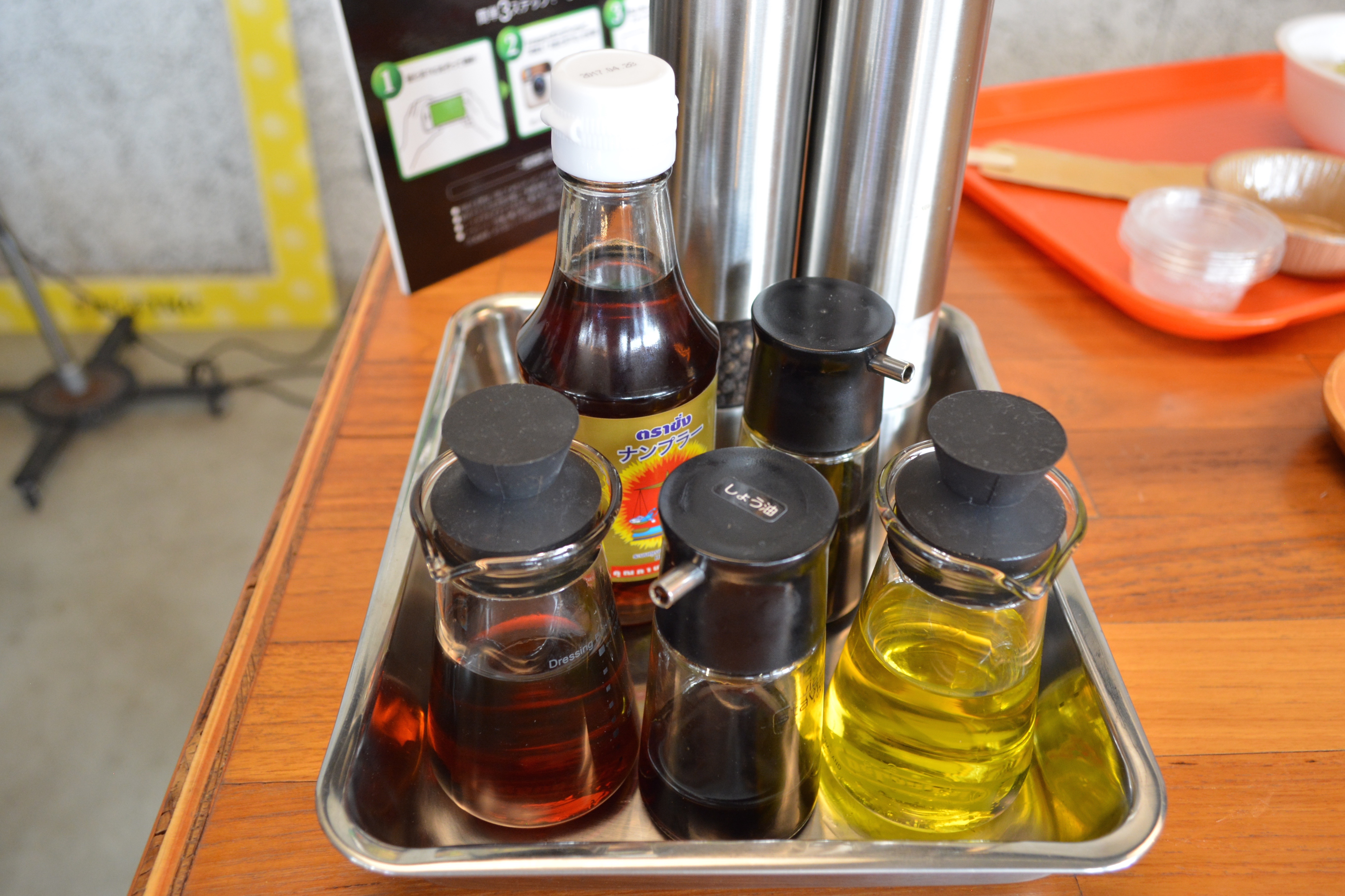 調味料は醤油/出汁醤油/オリーブオイル/ナンプラー/ごま油/塩/コショウから選べますよ。