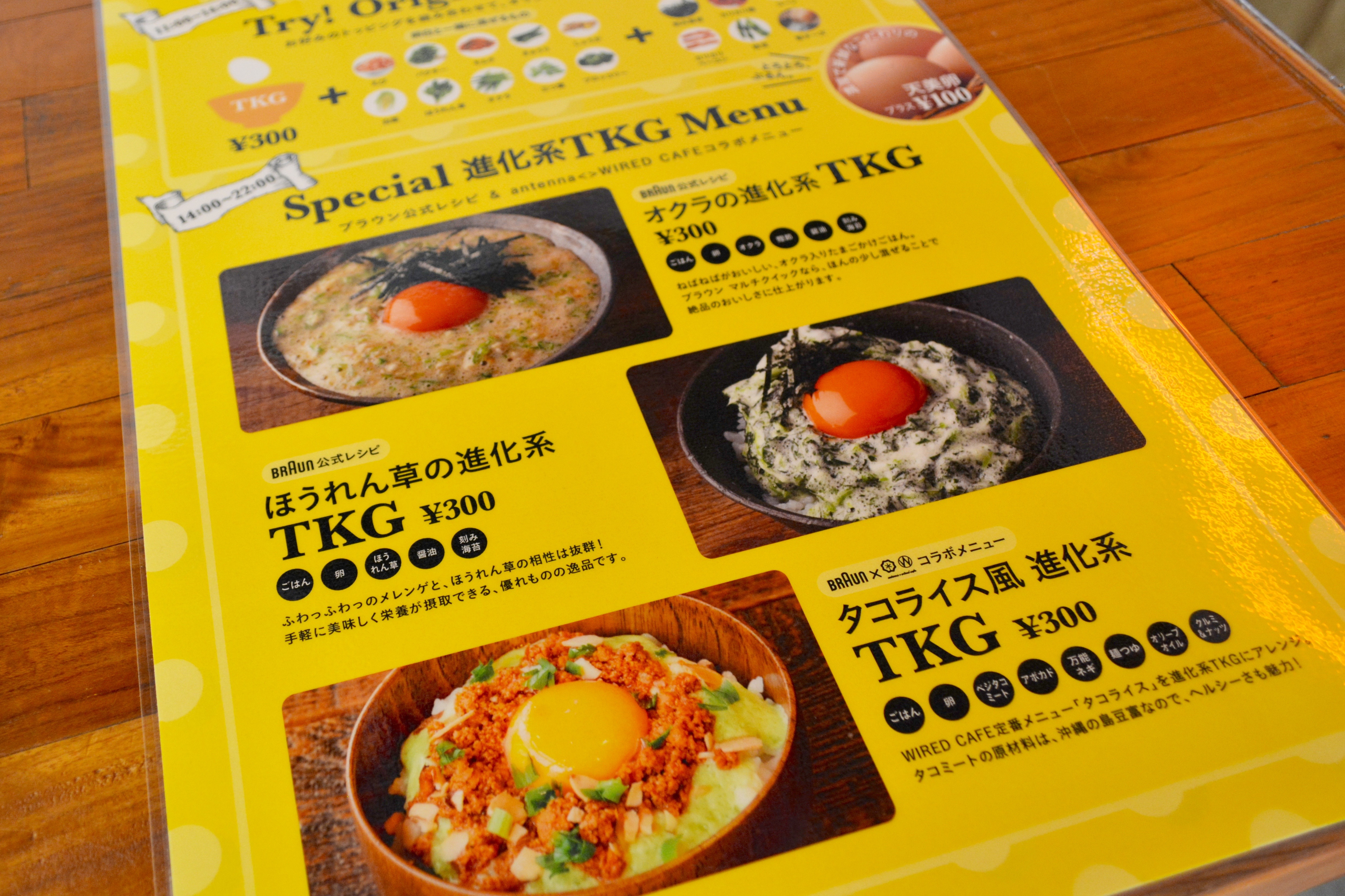 向かったのは、東京・表参道駅のほど近く。「COMMUNE 246」内にある「Antenna <> WIRED CAFE」。ここが11月5日(木)まで進化系TKGとのコラボカフェになっています。時間帯によって分かれていて、11時〜14時の「第一部」は、自分で作ることができる時間帯です。