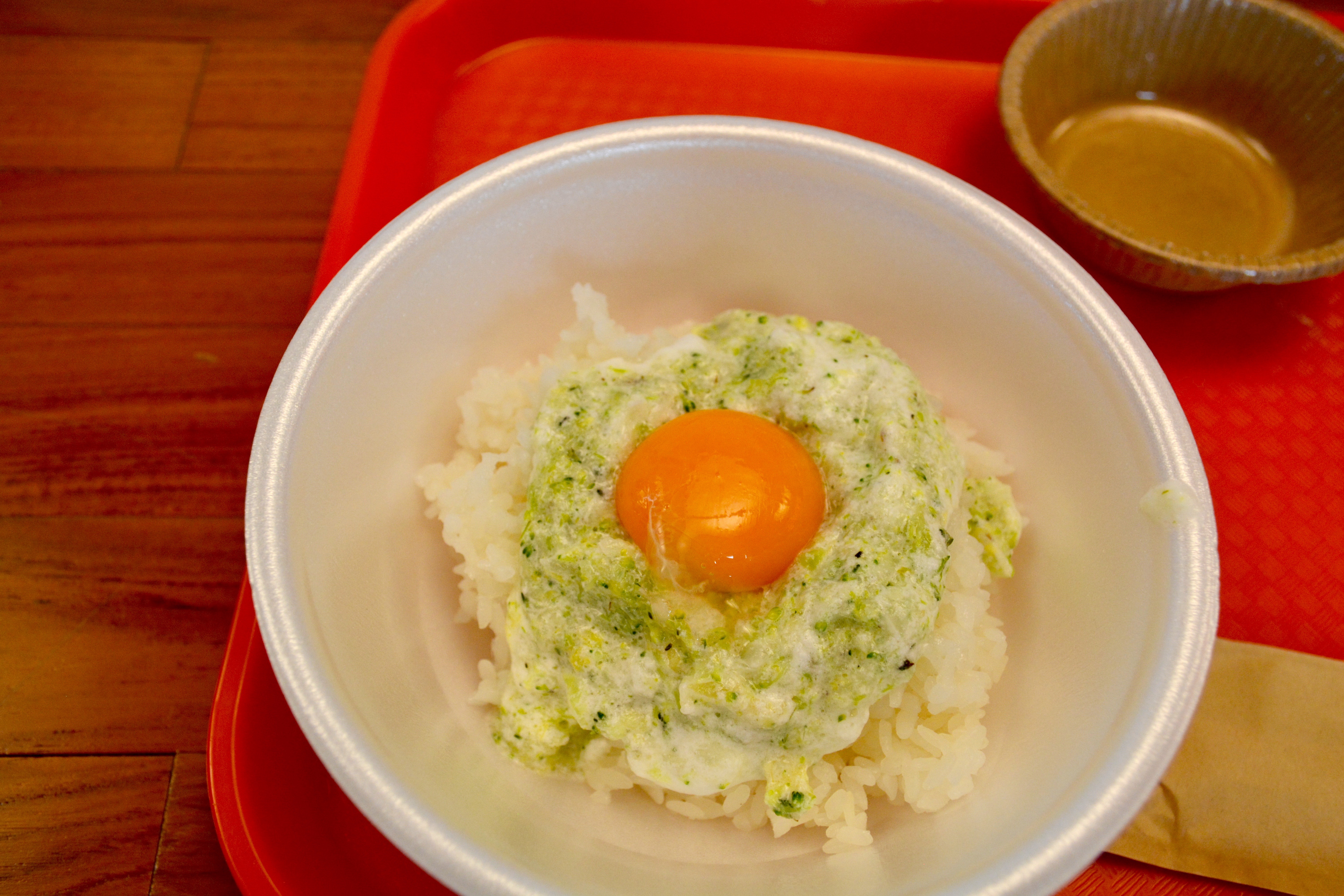 まずはレジカウンターで白いごはんと生卵のセットを購入(300円)。次に、混ぜる具材をセレクト。たくさんあって迷うけど、今回は白菜、生姜、焦がしブロッコリーの3つをピックアップ。本当にTKGに合うのか半信半疑なものを選んでみました。
