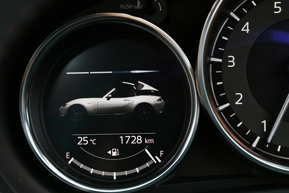 今回の商品改良で最大のトピックとなるのが、電動リトラクタブルハードトップ仕様の「ロードスターRF」に搭載された、2リッターエンジンの性能向上だろう。最高出力がこれまで158馬力だったものが、184馬力へとパワーアップしたが、それよりも大きいのは、最高回転数が6800回転から7500回転へと引き上げられたこと。これによってロードスターRFは、よりスポーツカーらしい高回転型エンジンを手に入れたといえるが、実際に乗ってみて印象的だったのは、むしろ、普段乗りで多用する常用域でのフィーリングが、大幅にリファインされたことだ。