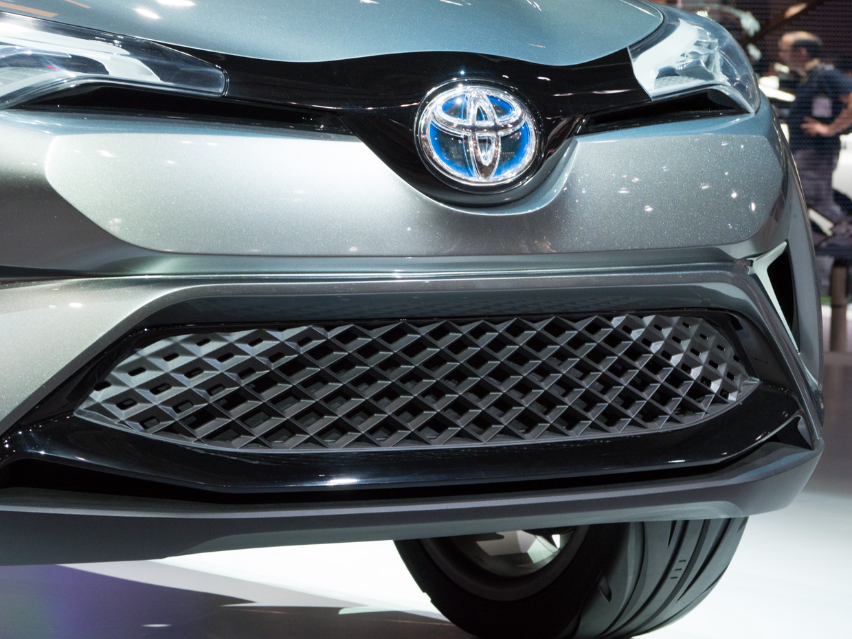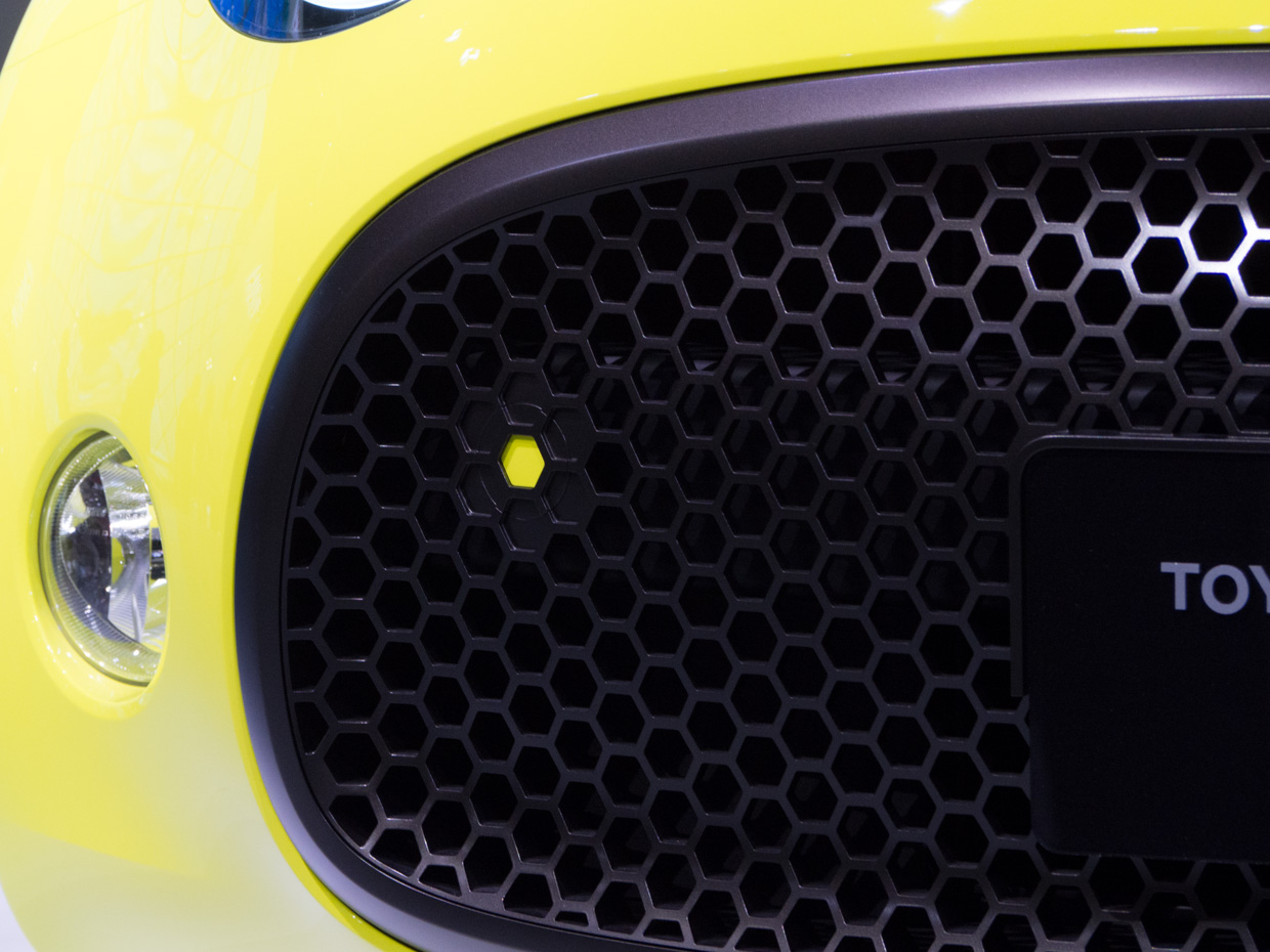 もちろんリアバンパーにも、牽引フックを取り付けるための穴の跡が見られましたよ。ちなみに下の写真は、同時に発表された「C-HRコンセプト」のフロントグリル。どうです? まだ出るかどうか分からないいコンセプトカーのソレは、こんなにもスッキリしているものなのです!