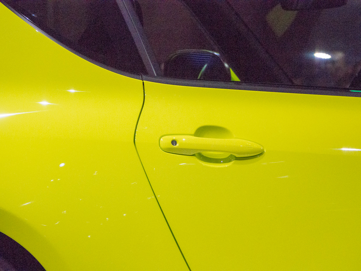 ちなみにC-HRコンセプトのドアハンドルがコチラ↓。カッコエェッ! そのままの姿で市販されることが決まっていないコンセプトカーのハンドルは、これくらいブッ飛んでいるものなんです!