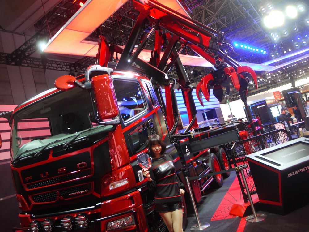 筆者が会場で一番ワクワクしたのは、このコ! 三菱ふそうの「SUPER GREAT V SPIDER」。