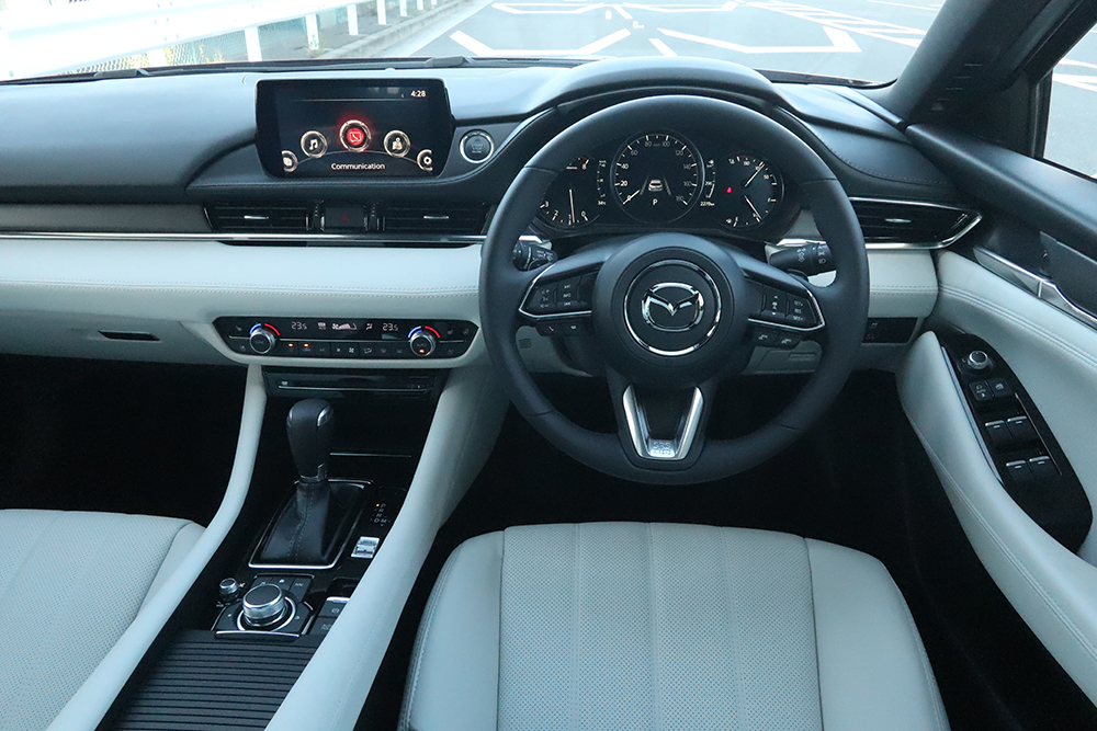 エンジンは、先だって改良を受けたCX-5と同様、ディーゼルエンジンが急速多段燃焼機構などを採用する最新スペックにアップデートされ、2.5リッターのガソリンエンジンには“気筒休止機構”が搭載された。また、2リッターのガソリンエンジンも、低中速域でのトルクアップや燃費向上が盛り込まれるなど、すべてのエンジンがマツダの最新バージョンに引き上げられている。