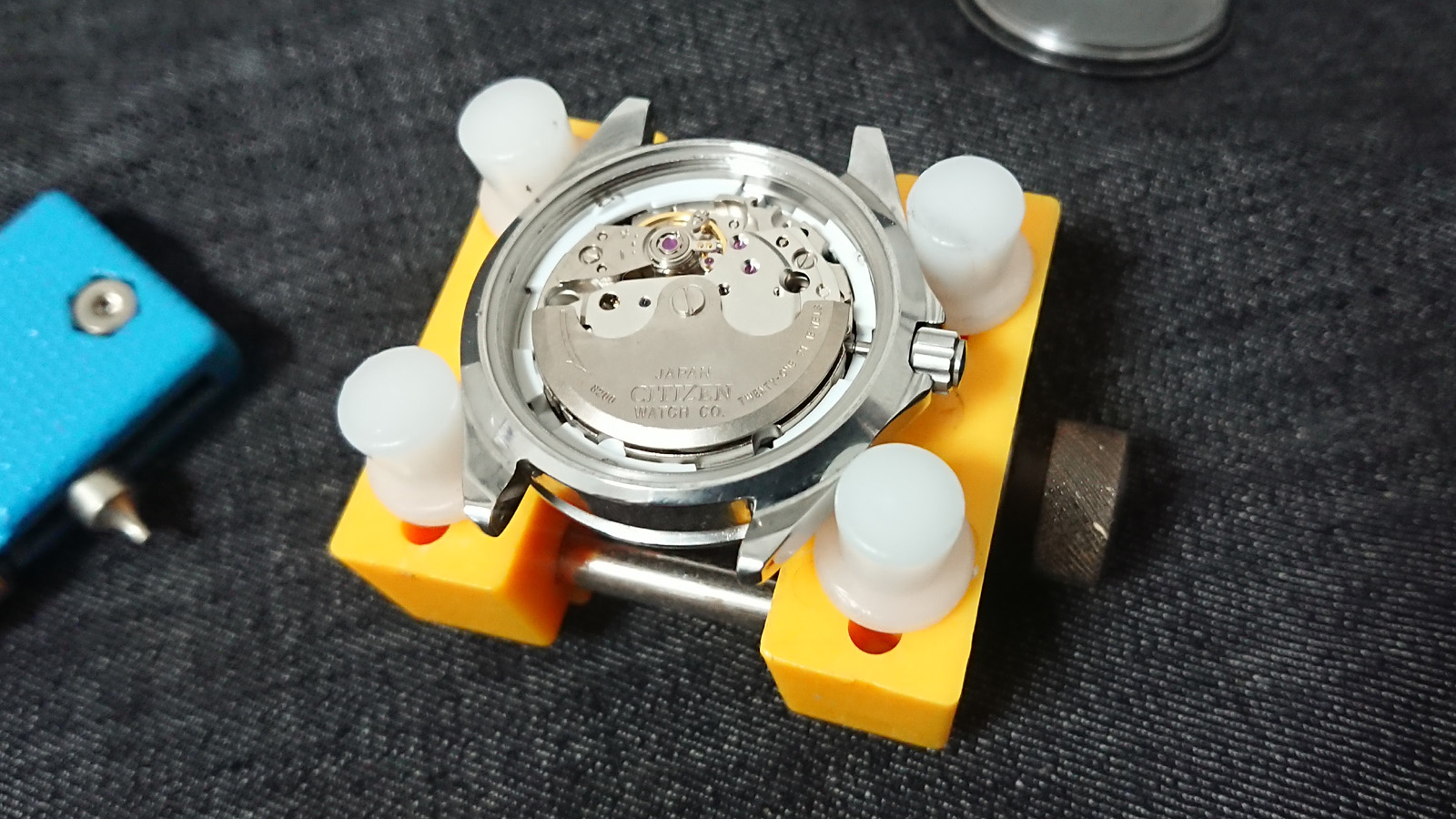 まずは中身の取り外しから。裏蓋開けると、中にはまごうことなきメカニカルムーブメントが…!
