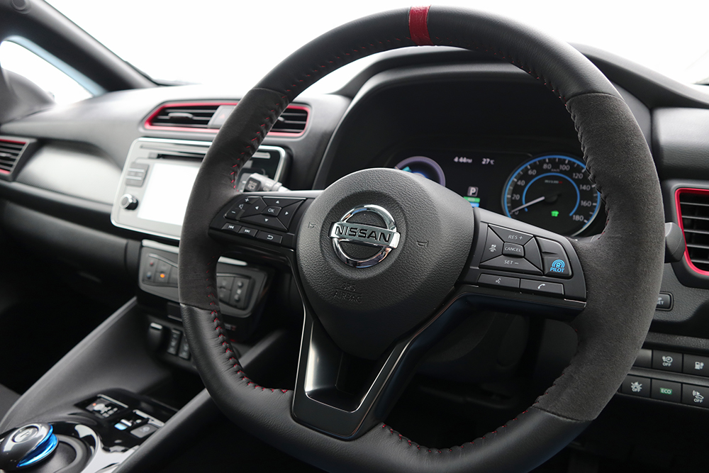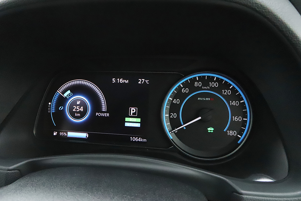 また、コーナリングにおいても、チューニングされたサスペンションとタイヤ&ホイールの18インチ化によって、高い旋回性能を手に入れている。元々、低重心なリーフの基本性能と相まって、かなりのGを伴うコーナリングでも対応してくれる。しかも、ワインディングロードでは、先述したソフトウェアチューニングがうまくハマっている。うねりのある路面でも、常にタイヤを路面へ押し付け、グリップとトラクションを生み出してくれるため、鮮烈な走りを味わえるのだ。