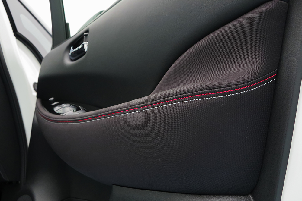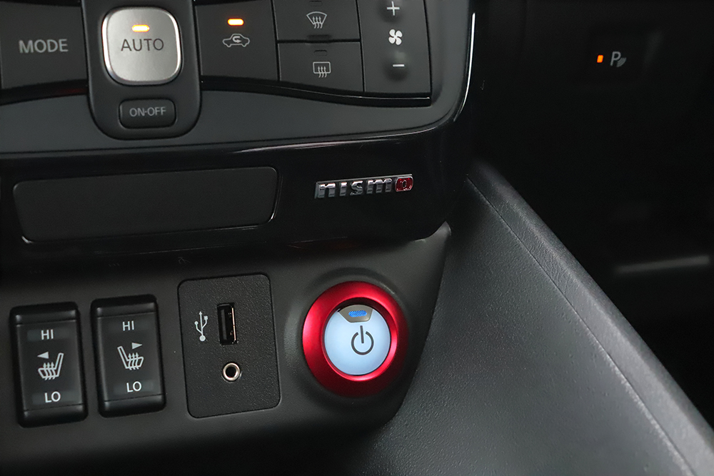 一方のインテリアは、赤いステッチを配することで典型的なスポーツモデルの設えとし、ステアリングホイールには人工スエードの“アルカンターラ”を巻き、触感に優れたものとしている。加えて、電制シフトやメーター、カーボン調フィニッシャーといったパーツを専用とするほか、NISMO用のシート地とドアトリムでスポーティな雰囲気を高めている。これらも、他のNISMOモデルと共通の設えだ。