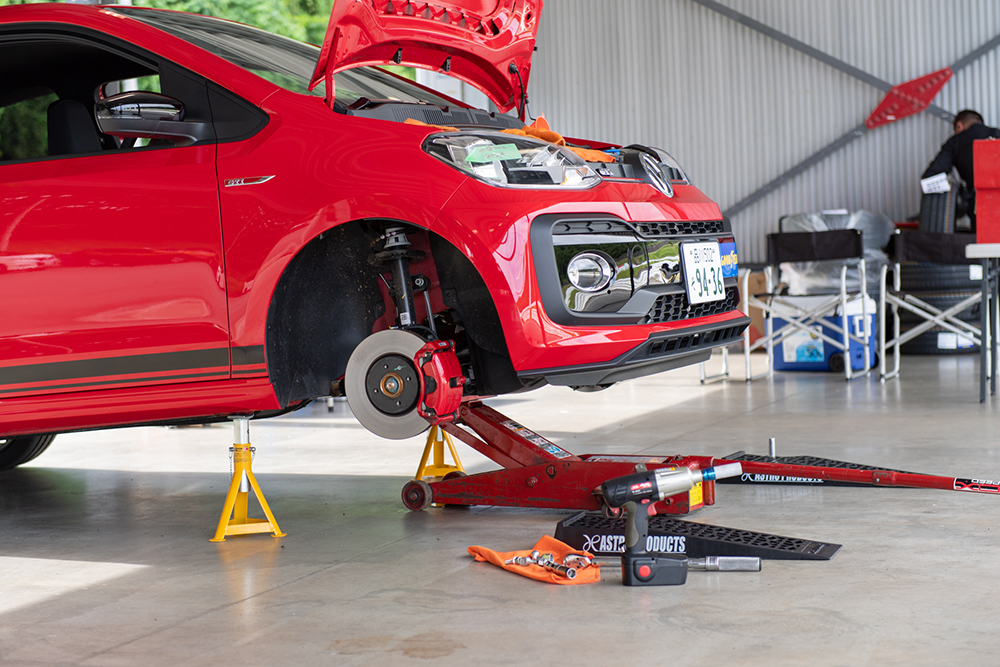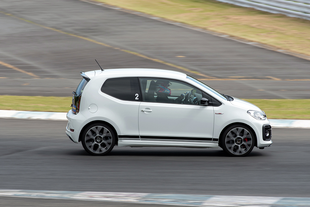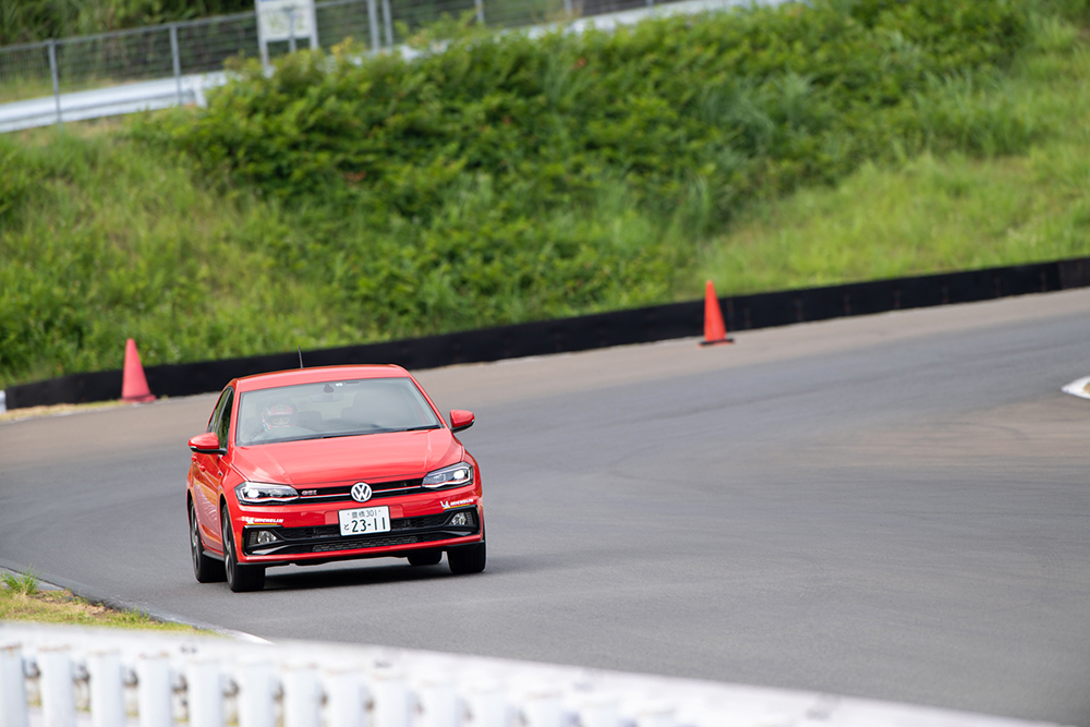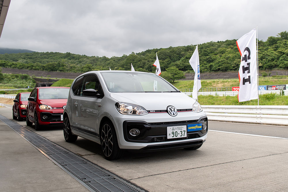 公道をドライブする時は、同乗者が不快に感じないようギクシャクしないスムーズな運転を心掛けている私ですが、今回はサーキットでのドライブということで、少しメリハリのある運転にトライ。そこで分かったのは、2台のGTIのブレーキが、とてもよく効くということ。また、ポロGTIとup!GTIはボディサイズがコンパクトなので、コース幅の狭いショートサーキットでも余裕を持ってドライブできました。