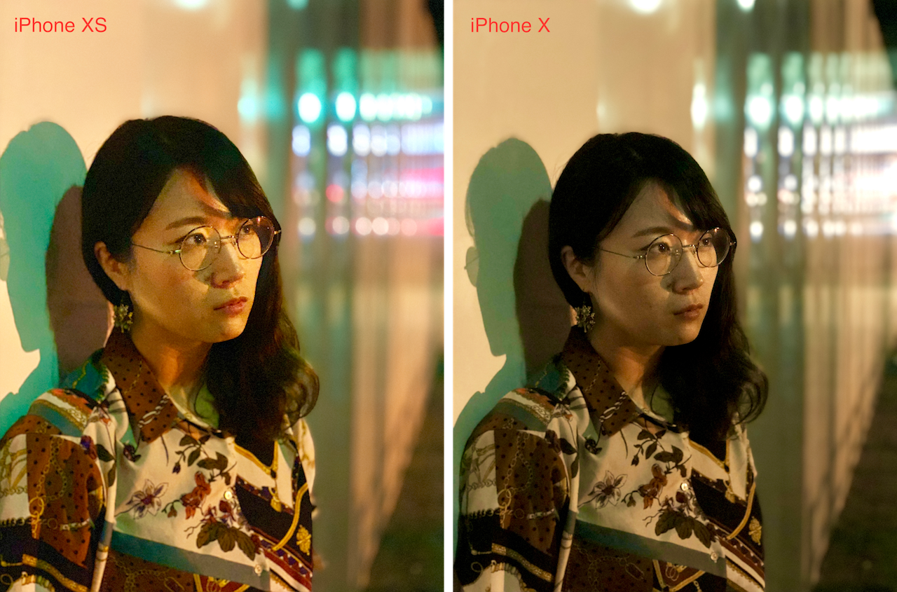 上の画像がiPhone XSで撮影した暗所でのポートレート写真。下のiPhone Xで撮影した写真と比べると、違いがわかりやすいと思います。