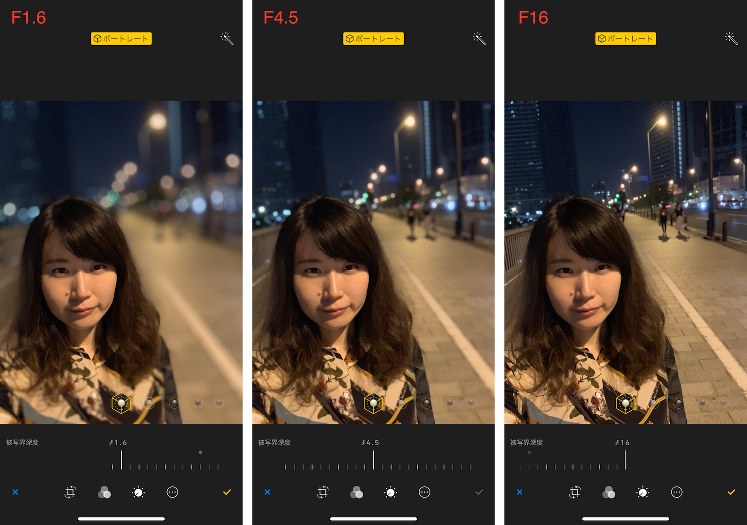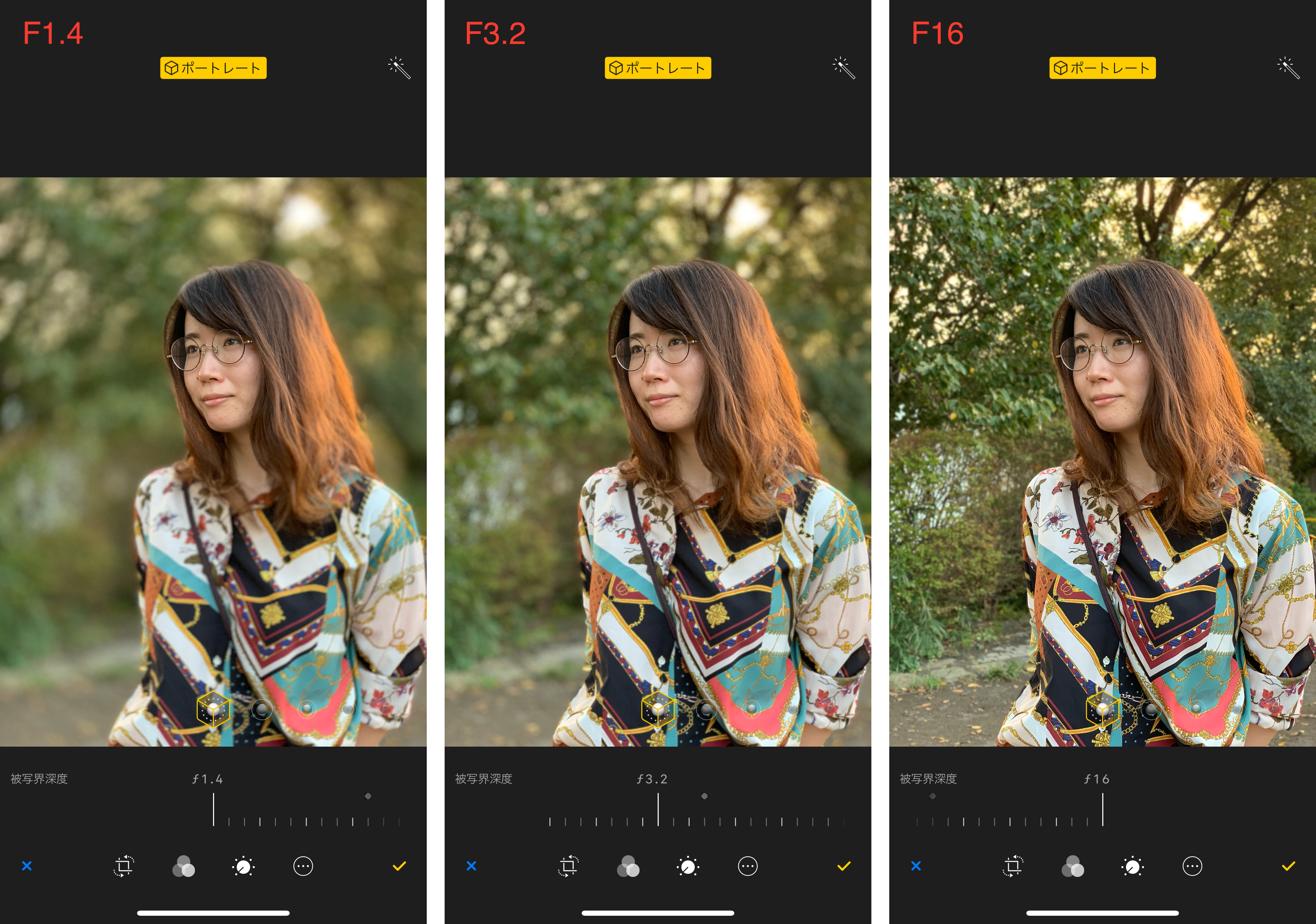 ▲iPhone XS Maxで撮影。編集なし。深度コントロール機能比較