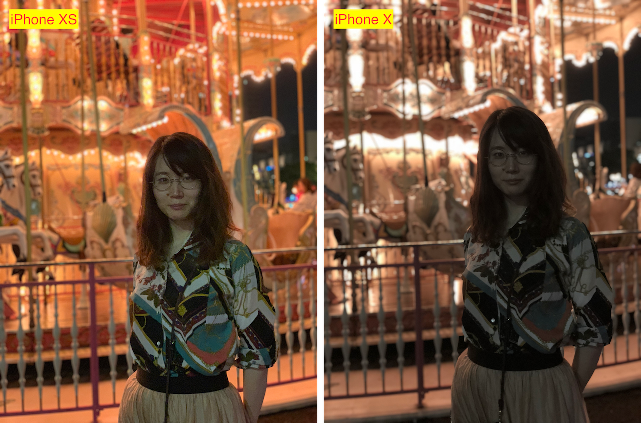 しかしXS/XS Maxでは、ピクセルサイズが1.2μmから1.4μmへと大きくなり、より多くの光を取り込めるようになっています。また、改良されたニューラルエンジンとISPの連携により、動きのある被写体でも広いダイナミックレンジで撮影できる「スマートHDR」機能に対応したことも大きな変化です。