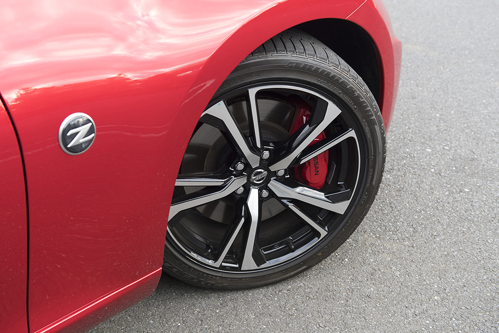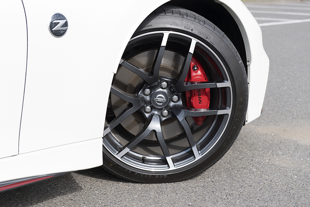 このフェアレディZ NISMOには、エンジンの専用チューニングコンピューターや等長デュアルエキゾーストシステムに加え、専用サスペンション(スプリング、ショックアブソーバー、スタビライザー)やヤマハ製パフォーマンスダンパーが採用されるほか、徹底したボディ補強も施されています。また先の改良で、転がり抵抗を20%低減した新タイヤ(ダンロップ「SP SPORT MAXX GT600」)も採用されました。