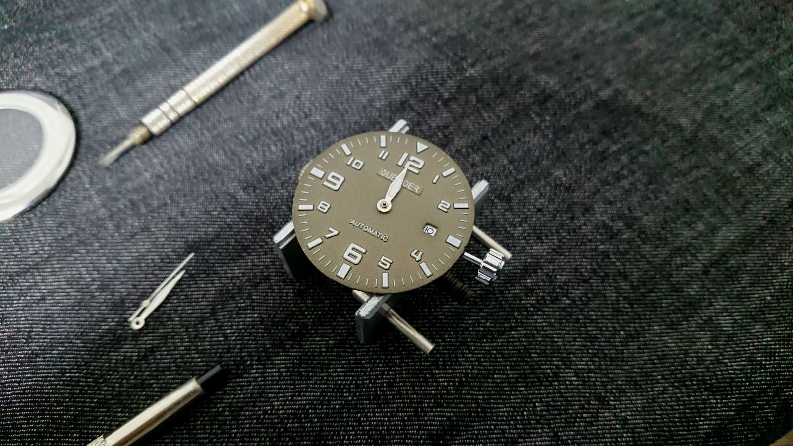 仕方がないので、分針を再び取り付けようと頑張ったのですが、何度やってもまたすぐ外れてしまう…。安物ゆえかパーツの精度そのものがよくないのかもしれません。