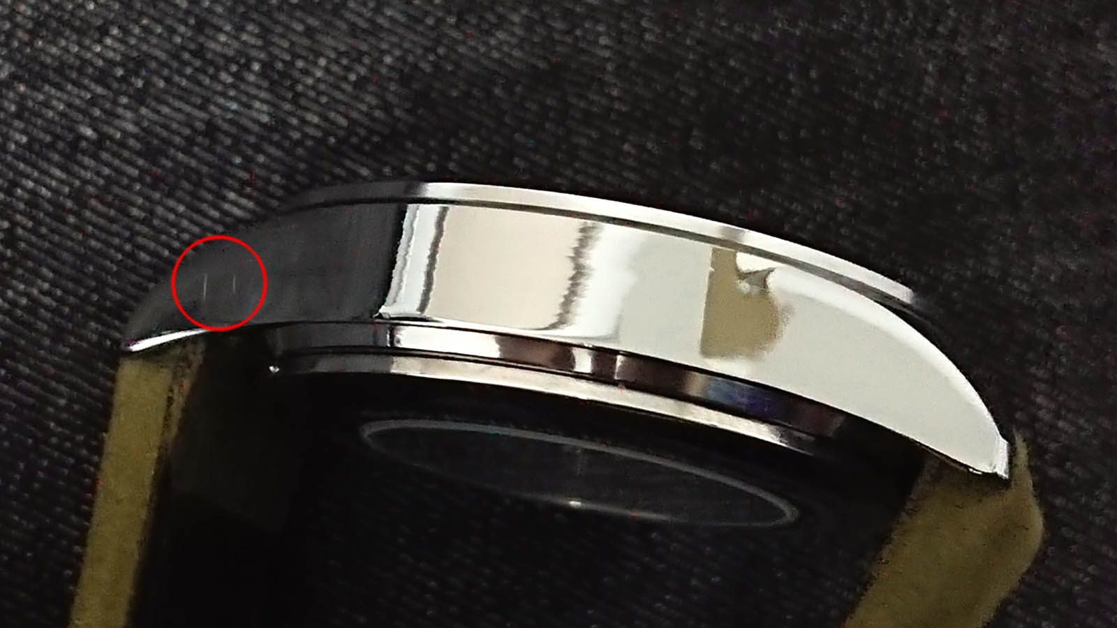 裏蓋側、シースルーとなっているガラスは内側に小さいながらも目視できるキズがありましたし、検品で不良品をはじく、という工程が存在しているかも、もはや怪しい…。