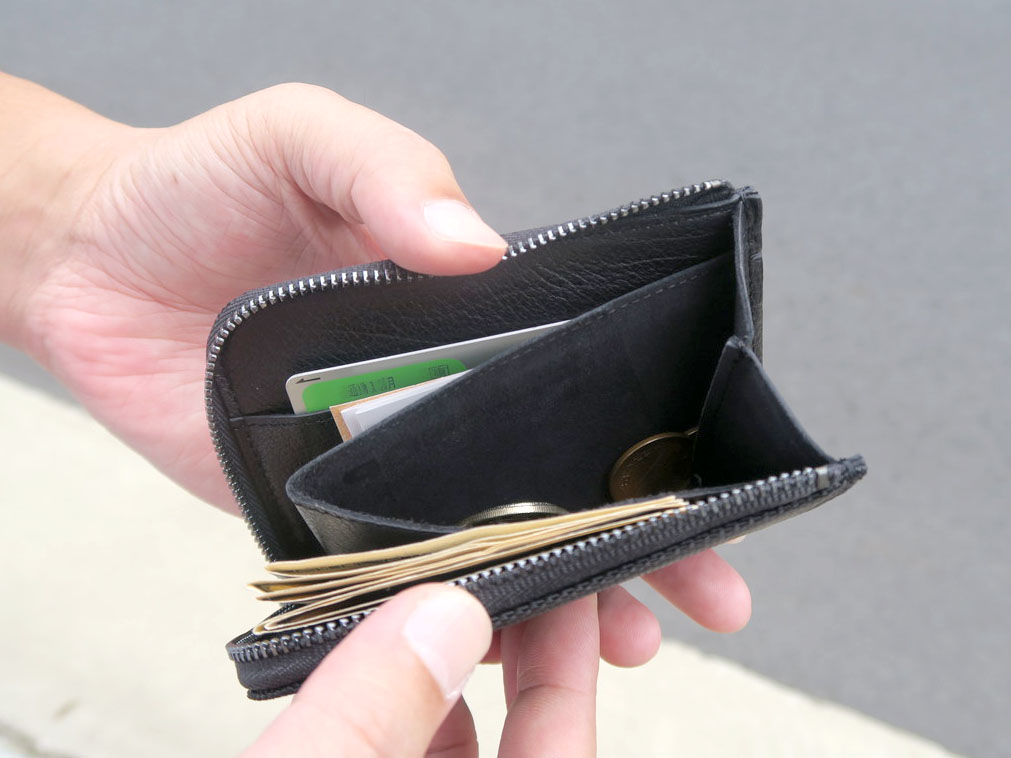 当初は休日用に考えていた「ポケット財布」でしたが、実際に使ってみると便利すぎてヤバイ。メイン財布はバッグに入れておいて、「ポケット財布」はセカンド財布として使おうと思っていましたが、十分メインとして機能することが判明。小銭入れもパスケースもやめて、これ1本でいこうかな。そう思わせるほど使い勝手がよく、夢の“手ぶら”を実現する見事な出来映えでした。