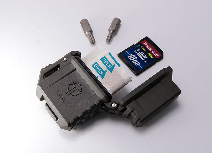 ライター以外に入りそうなものを入れてみました。絆創膏や錠剤、SDカードにビットツールなどなど。他に単4電池が3本入りました。逆にいえばその程度のサイズ感です。多くは望めませんが、ボディ部には止水用のOリングがありますのである程度の防水性が期待出来ます。雨に濡れるくらいなら問題ないと思います。