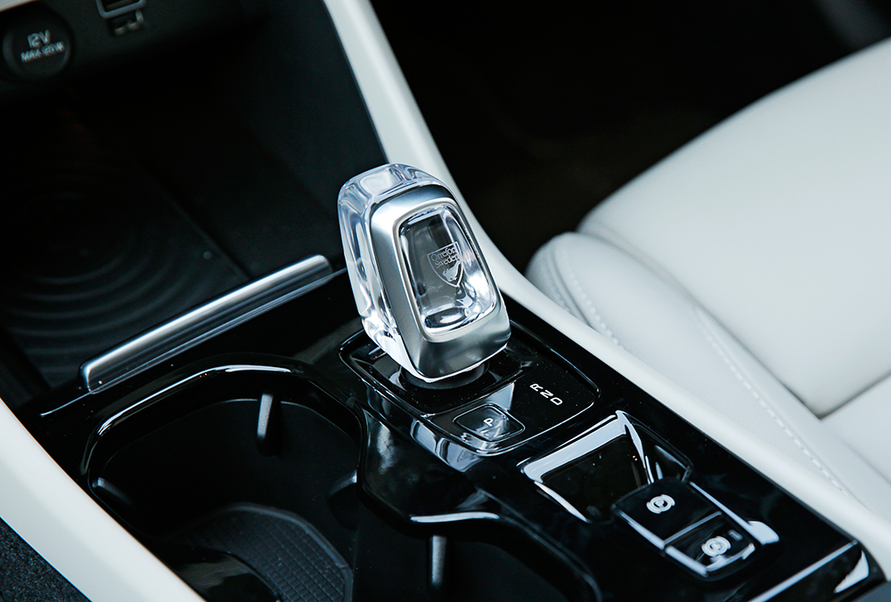 続いて「T4 AWD インスクリプション」をドライブします。モメンタムとの違いは、ホイールが元々19インチで、グリルや窓枠にクローム、ルーフレールにアルミが用いられ、全体にきらびやかな印象。シートは、前後ともにヒーターを標準装備する本革仕様となり、パネル類、シフトノブなども異なります。