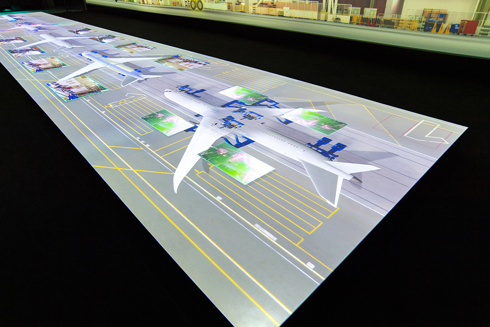 世界最大規模の航空機組み立て工場である、ボーイング・エバレット工場の787組み立てラインを再現したゾーン。世界各地から輸送された部品が組み立てられる様子を、巨大画面により見学できます。CGに加え、フライト・オブ・ドリームズのために新規撮影された画像も駆使されており、航空ファンも思わずヒザを打つコンテンツとなっています。