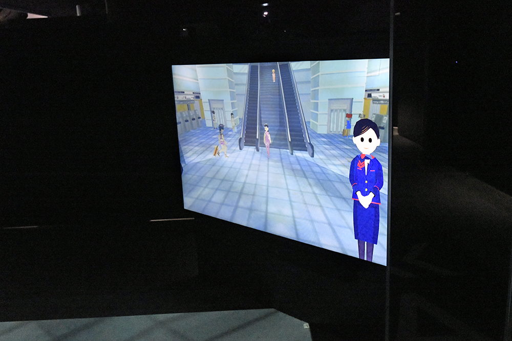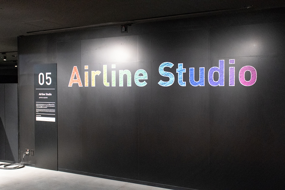 塗り絵により自分が描いたお客さんとともに、航空会社の仕事を学べるエアラインスタジオ。用意された客室乗務員やパイロットの制服を着用してスタジオに立つと、周囲に空港内や機内を再現した映像が映し出されます。機内用カートを使ってのドリンクサーブ、機内アナウンスなど、多彩な仕事を体験できます。