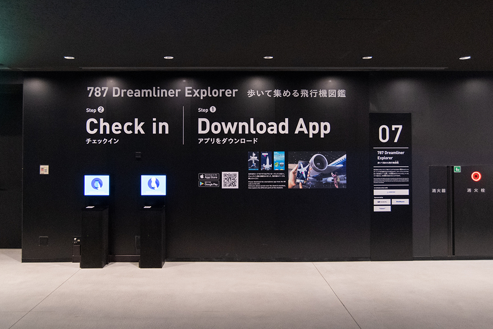 自分のスマートフォンに専用アプリをダウンロードし、ZA001の周囲を歩きながら飛行機のパーツを探し、その役割を学ぶコンテンツ。スバルが開発・製造を担当する中央翼を始め、収録されるパーツ点数は60以上と、なかなかのボリューム。すべての部品が集まると、787図鑑が完成する仕組みになっています。