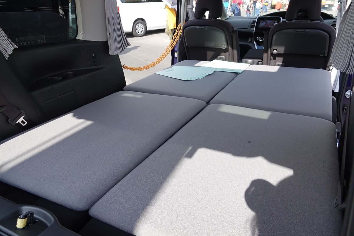 室内も2人で過ごすには十分すぎる広さ。もちろんリビングは寝室になりますし、ルーフテントで寝ればリビングを片付ける必要もありません。最大就寝人数は4人です。