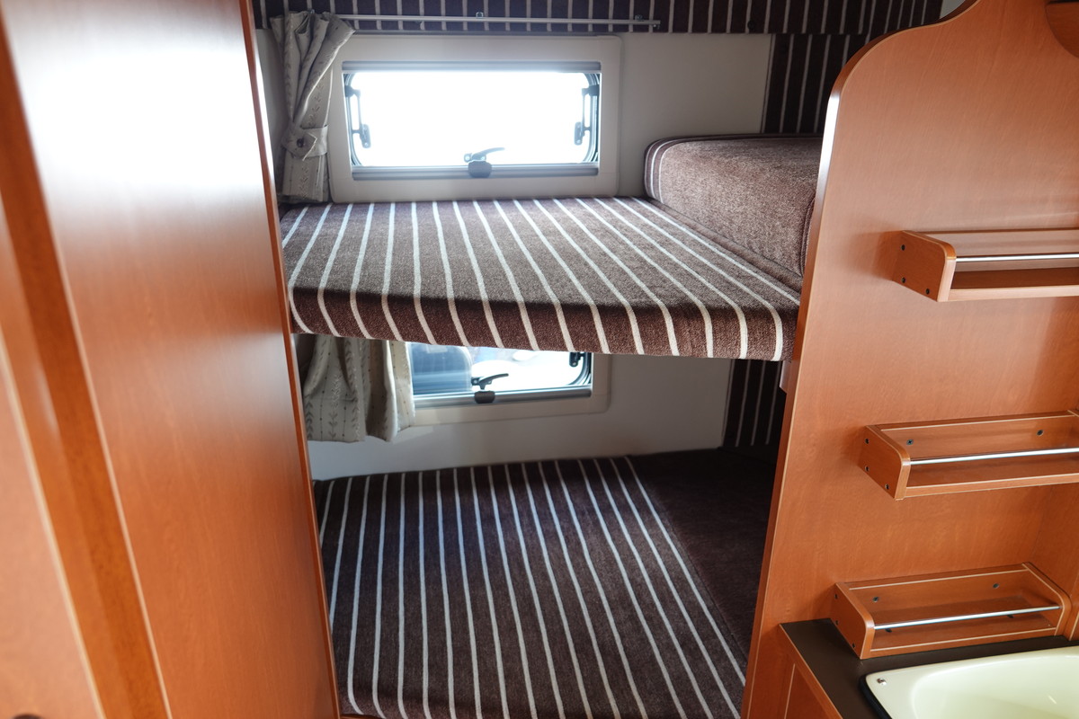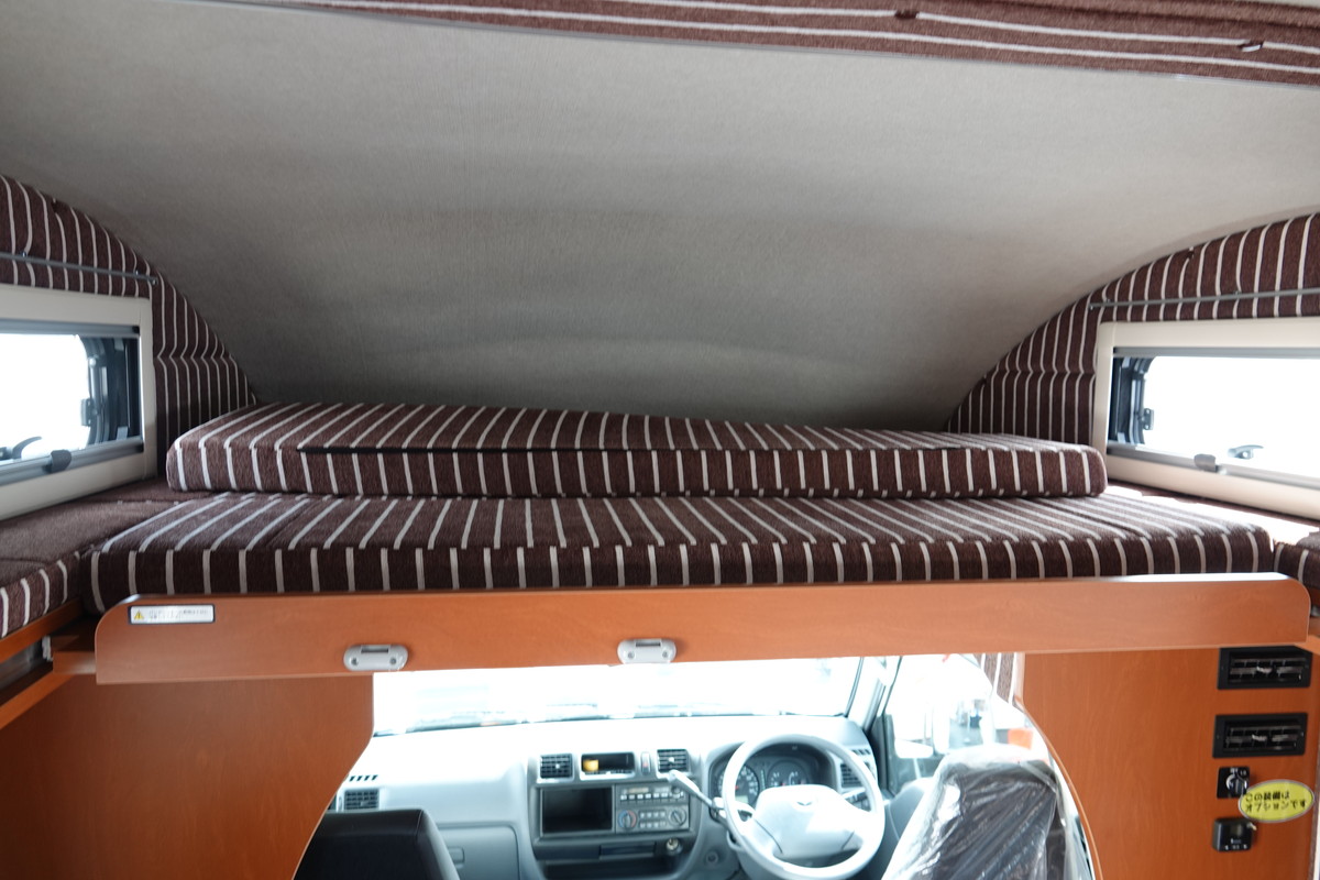 後方には2段ベッドを設置。ほかにも常設ダブルベッドを備えるタイプなど、5つのバリエーションが用意されています。