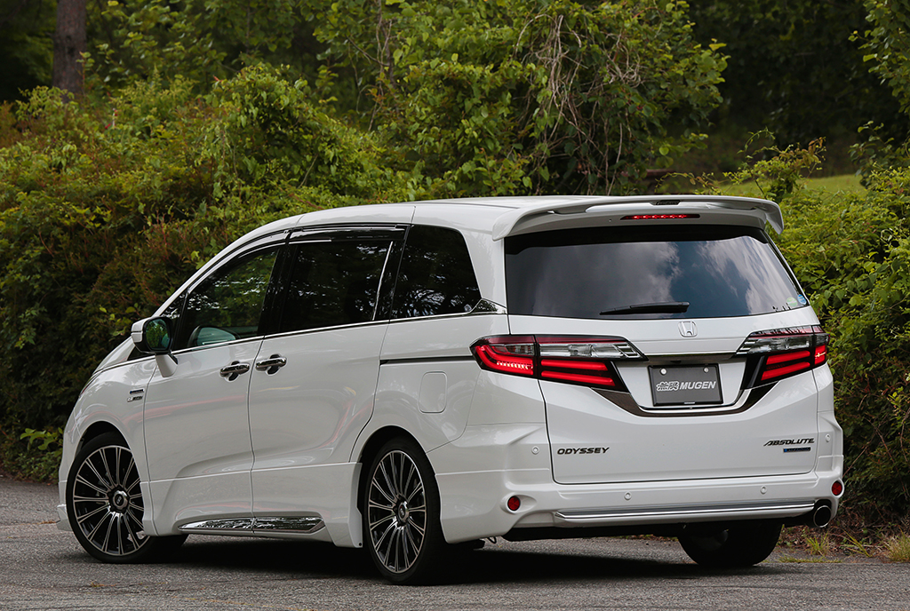 リアには、大型の「ウイングスポイラー」、そして無限の「デュアルサイレンサー」に合わせた「リアアンダースポイラー」も開発。スポーティなミニバンの後ろ姿を印象的に仕上げています。