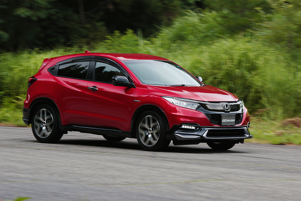 無限ヴェゼルは、前後左右のエアロパーツに加え、純正車に標準装備となるルーフエンドスポイラーの下部に「ロアウイング」を装着。これらのパーツにより“プレミアム・スポーツSUV”を演出しています。