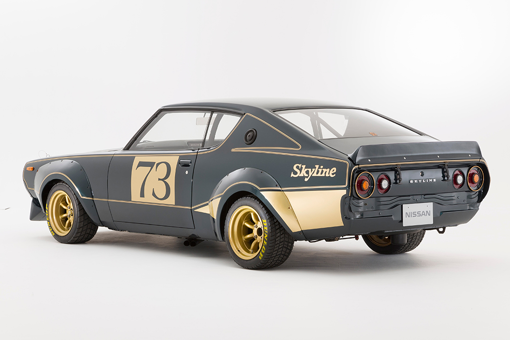 そう、このダークカラー×ゴールドの組み合わせは、1972年の東京モーターショーに展示されたKPGC110型、通称は“ケンメリ”GT-Rをベースとする幻のレーシングカー「スカイライン2000 GT-R レーシングコンセプト」へのオマージュなのです。
