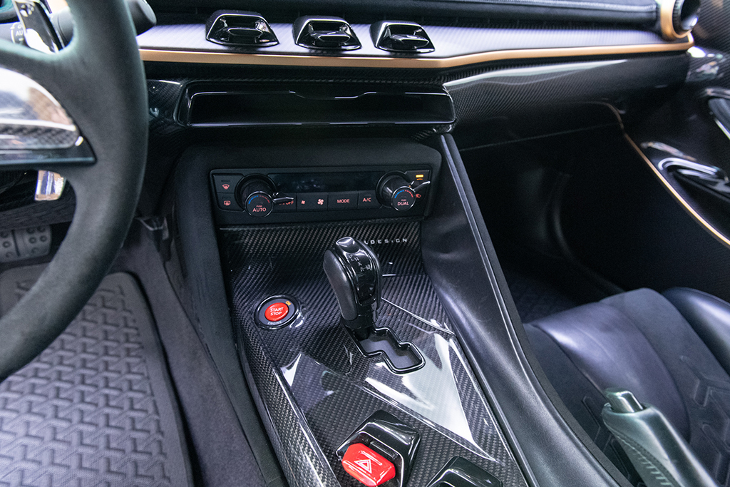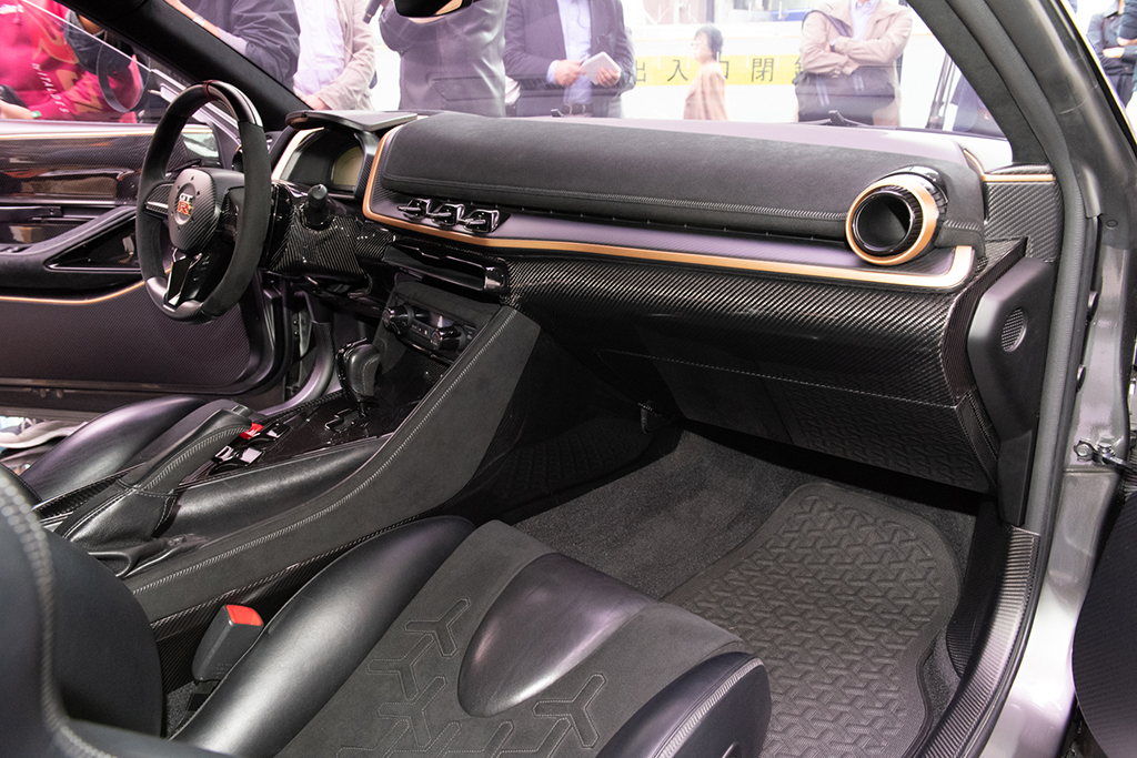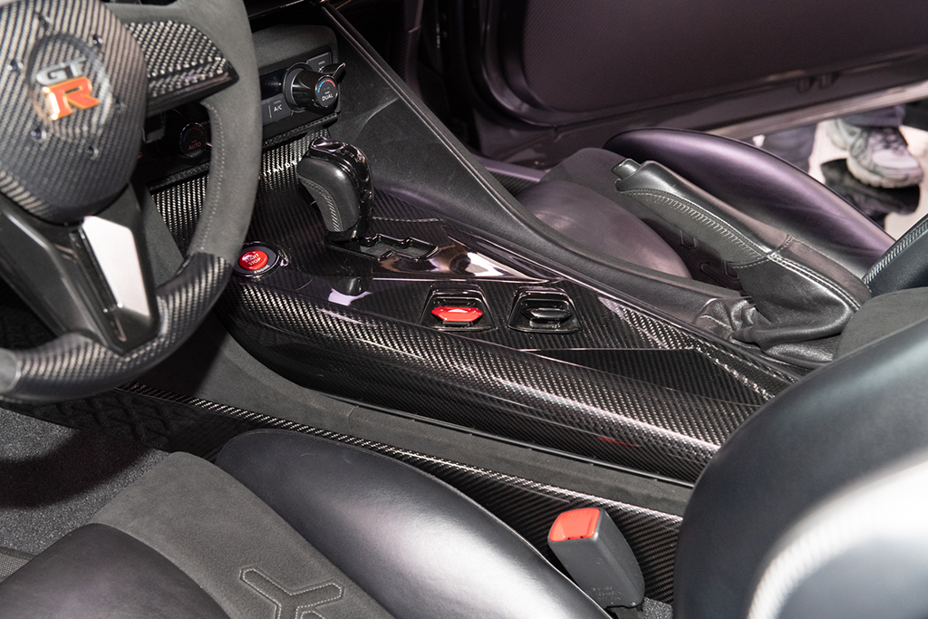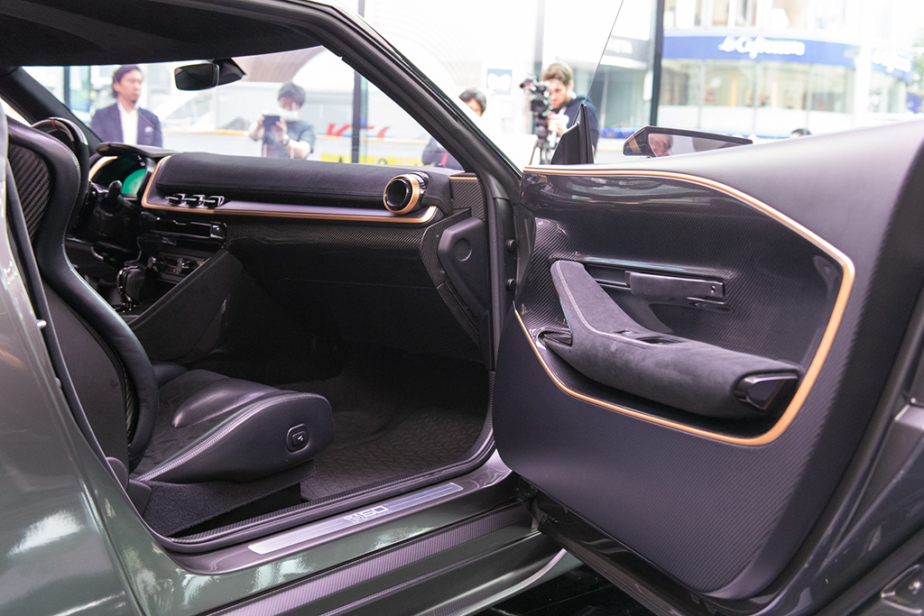 インテリアも同様で、光沢アリとナシ、2種類のカーボンが用いられたセンターコンソールは専用形状であるほか、人工スエードの“アルカンターラ”と黒のレザーをあしらったシート、そして、ドアのインナーパネルに至るまで、専用パーツが採用されています。ここまで徹底した特別仕立てというのは、長い日本車の歴史を振り返ってみても、初めてではないでしょうか…。