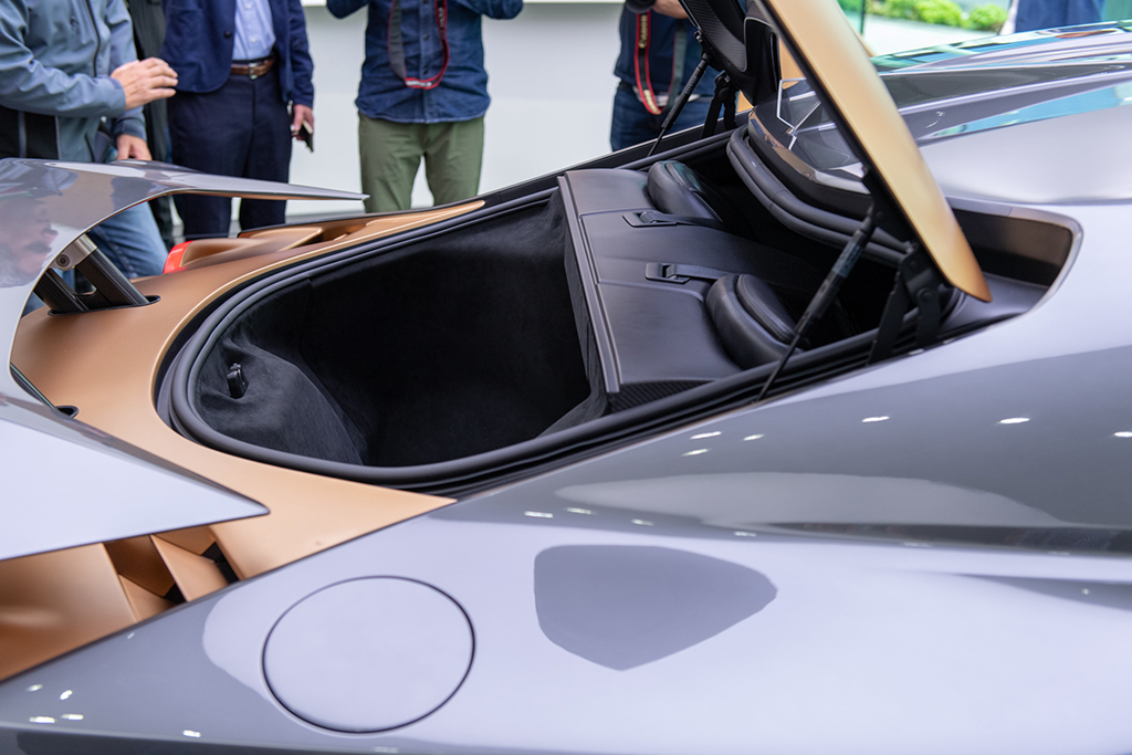 さらに細かく見ていくと、エクステリアのすべてのパーツが、GT-R 50のために作られた専用品であることが分かります。前後フェンダーや着脱式のボンネット、そして立体的なテールランプを備えた特徴的なリア回りなどは、オリジナルGT-Rとの違いが一目瞭然。