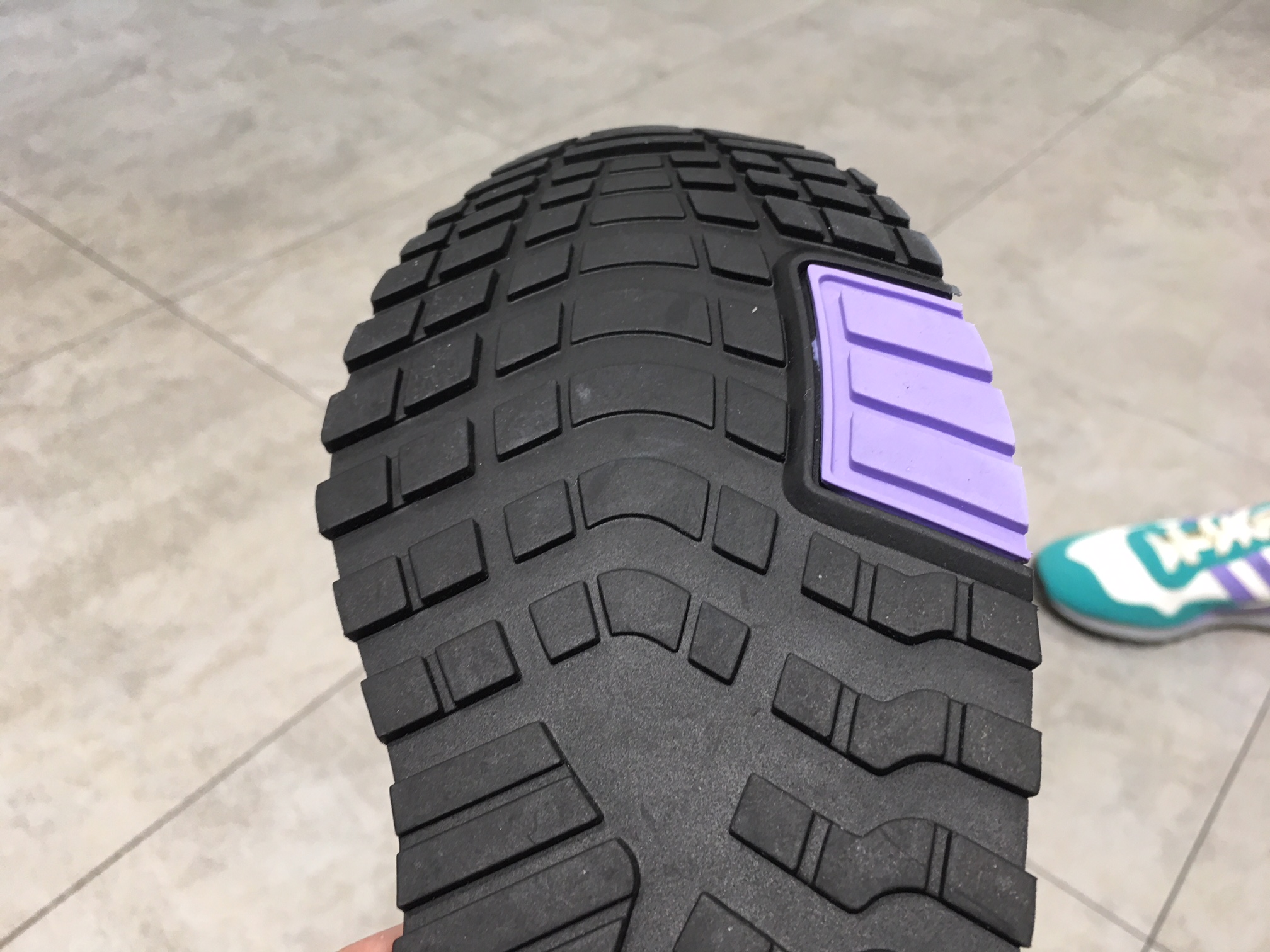 アウトソールの一番負荷がかかって摩擦しやすい部分はしっかりとラバーに差替えられ、高い耐久性を実現しています。