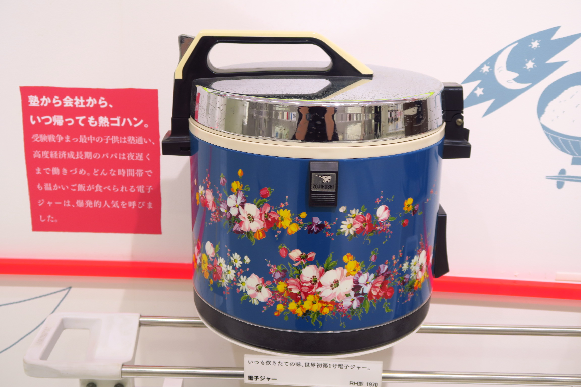 ▲世界初の電子ジャーを発売したのも象印だった。ここにも花柄が使われている