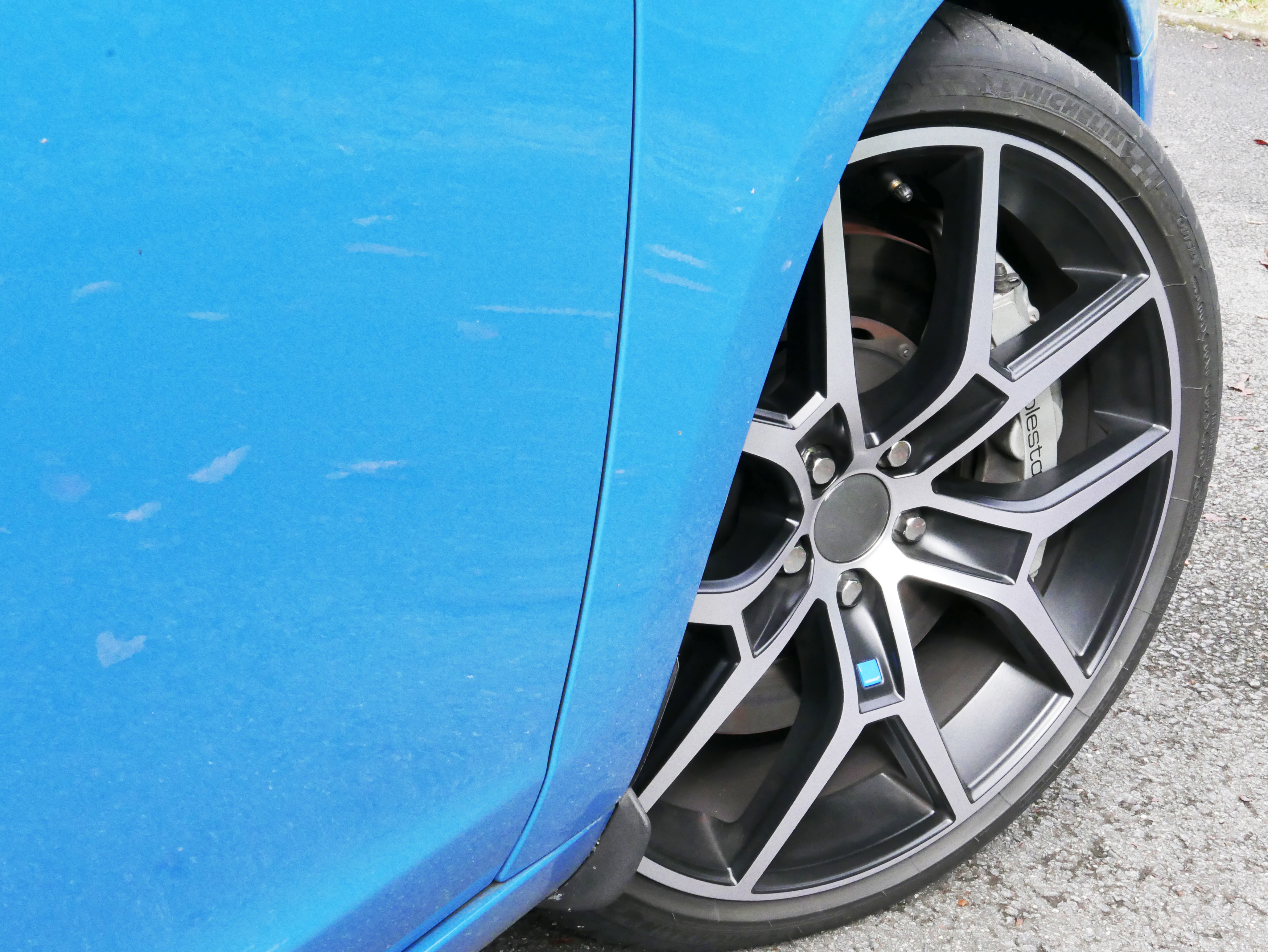 それが確信に変わるのは、20インチホイールの造形を見た時。スポークがマッチョに外側へ盛り上がっているんです。ポールスターが名門ブレンボ社と共同開発した6ポッドのキャリパーを収めるために、スポークがキャリパーと干渉しないよう、外側へ逃げるデザインになっているんですね。細マッチョどころか、ムキマッチョ。