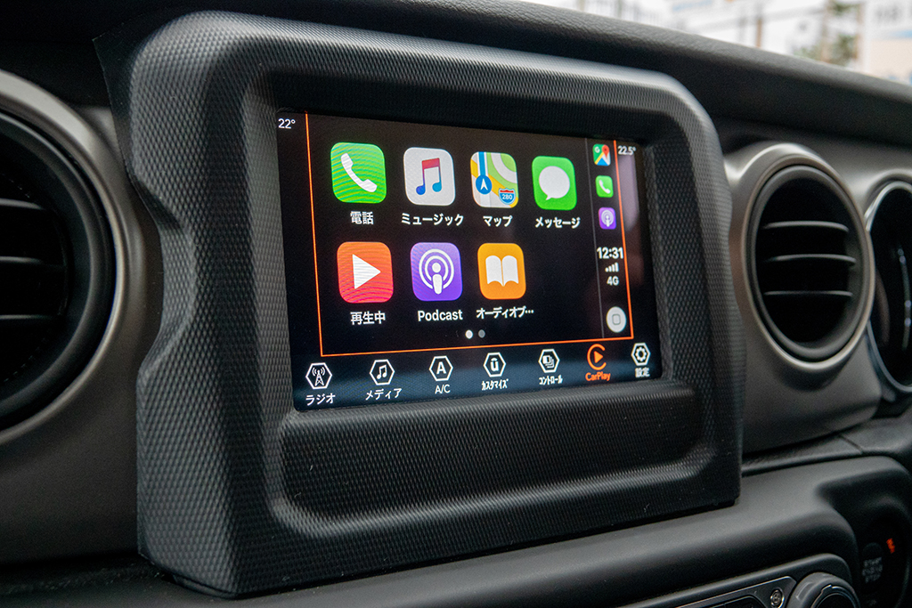 インテリアは、変わらない部分と変わった部分とが混在する。変わらないのは運転環境で、背筋をピンと伸ばして座るドライビングポジションや、周囲を見渡せる上に、ボンネットの先端まで見えて車幅感覚をつかみやすい視界など、ラングラーならではの美点が受け継がれている。