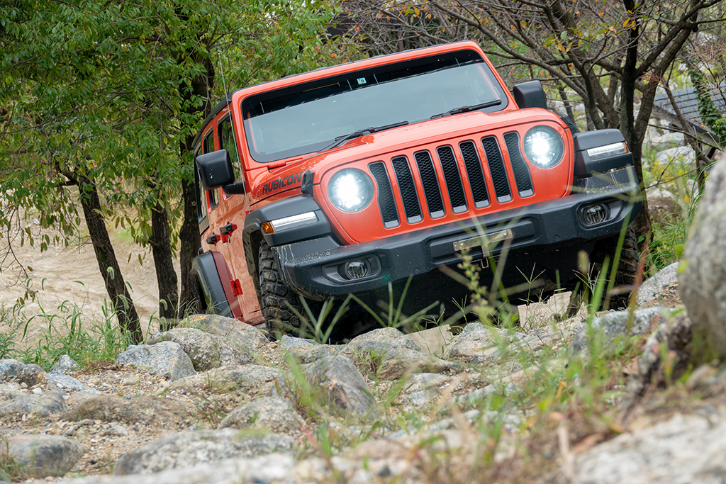 新型ラングラーは、ジープならではの悪路走破力にもさらに磨きをかけてきた。アプローチアングルは44度、デパーチャーアングルは37度、最大渡河水深は762mmと、世界に名だたるオフロードカーの中でも、傑出すべきスペックを実現している。