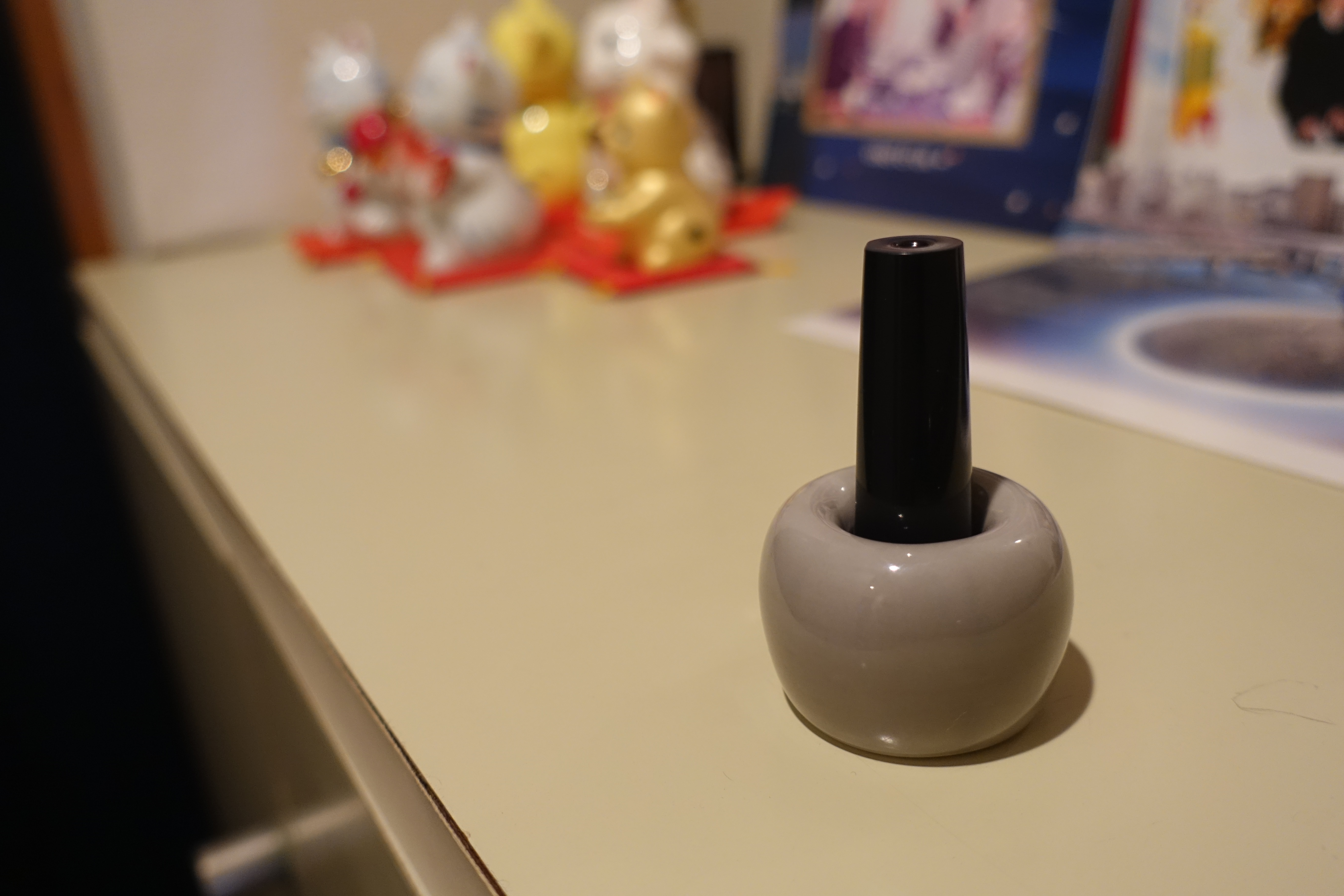 「歯ブラシスタンド」には、「ガラス歯ブラシスタンド」(490円/税込、以下同)「フロストガラス歯ブラシスタンド」(490円)「磁器歯ブラシスタンド」(290円)「白磁歯ブラシスタンド」(290円)の4タイプがあります。今回は、グレーの磁器ハブラシスタンドを利用しました。