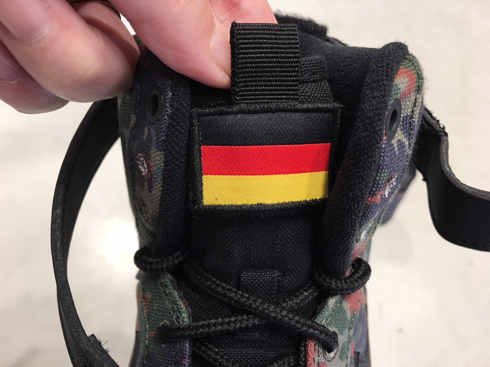 シュータンに付けられたドイツ国旗のパッチはベルクロ式で着脱が可能。隠密作戦時に所在がバレないようにするための配慮でしょうか!? っていうか柄でバレる!?