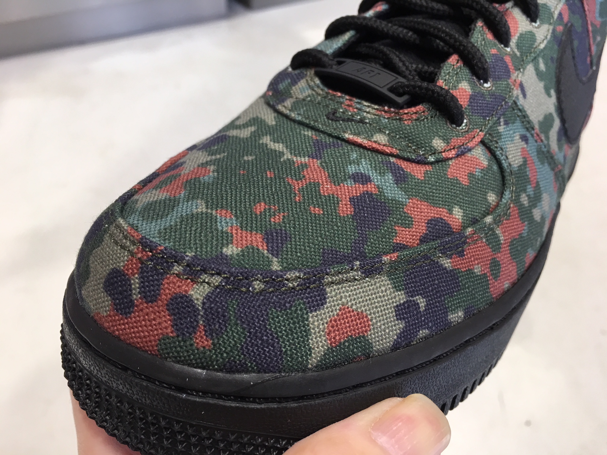 アッパーには複数カラーで構成されたドイツカモが。そして生地をよく見ると、コットンを格子状に織込んだリップストップ仕様になっていて、本ちゃんのユーティリティウエアを再現しています! 手が込んでますね~!