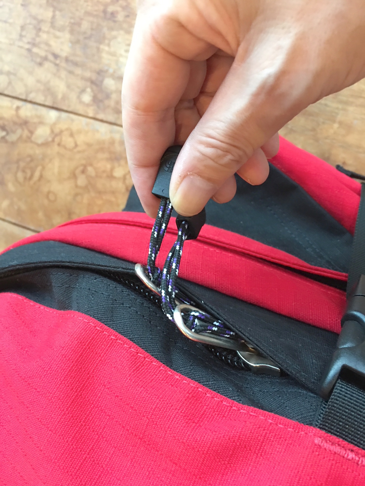 フロントポケット&メインコパートメントともにファスナーのスライダーにはタフなナイロンストラップが付いているので、グローブしながらでも開閉はラクチンです。