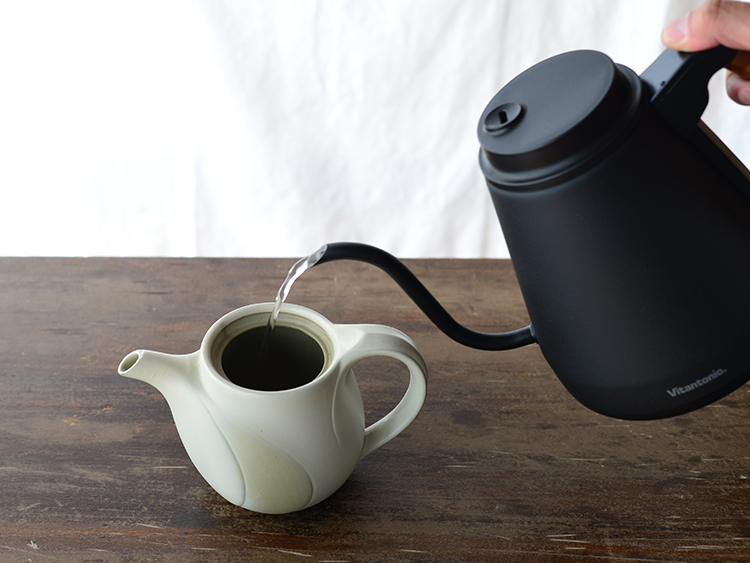 ▲煎茶に適した湯温は75〜80℃、玉露は50〜60℃といわれる。急いで日本茶を淹れたい時には、湯温を設定できる電気ケトルの方が便利