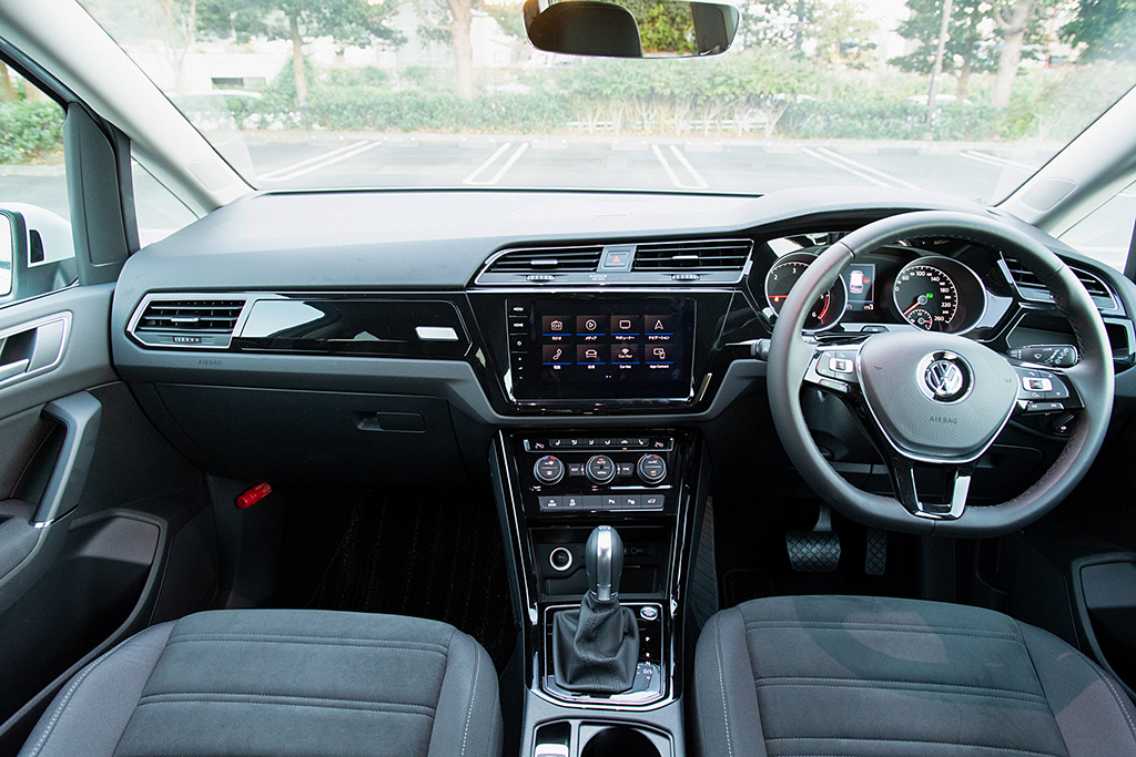 運転席へと乗り込み、ややアップライトなドライビングポジションをとるシートに腰を下ろし、ドアを閉めるという一連の流れを経て、真っ先に感じたのは「このガッチリした感じ、やっぱりゴルフの一族だ」ということ。ドア開閉時の重厚な感触、シート調整時に伝わる建てつけの上部さなど、さまざまな手触りについては、誰もが思い描くドイツ車らしさが満点。こうしたガッチリ感は、インテリアのあらゆる部分に共通していて、例えば2列目/3列目シートの格納・展開時も、シートバックのズッシリとした手応えから作りの良さが伝わってきます。
