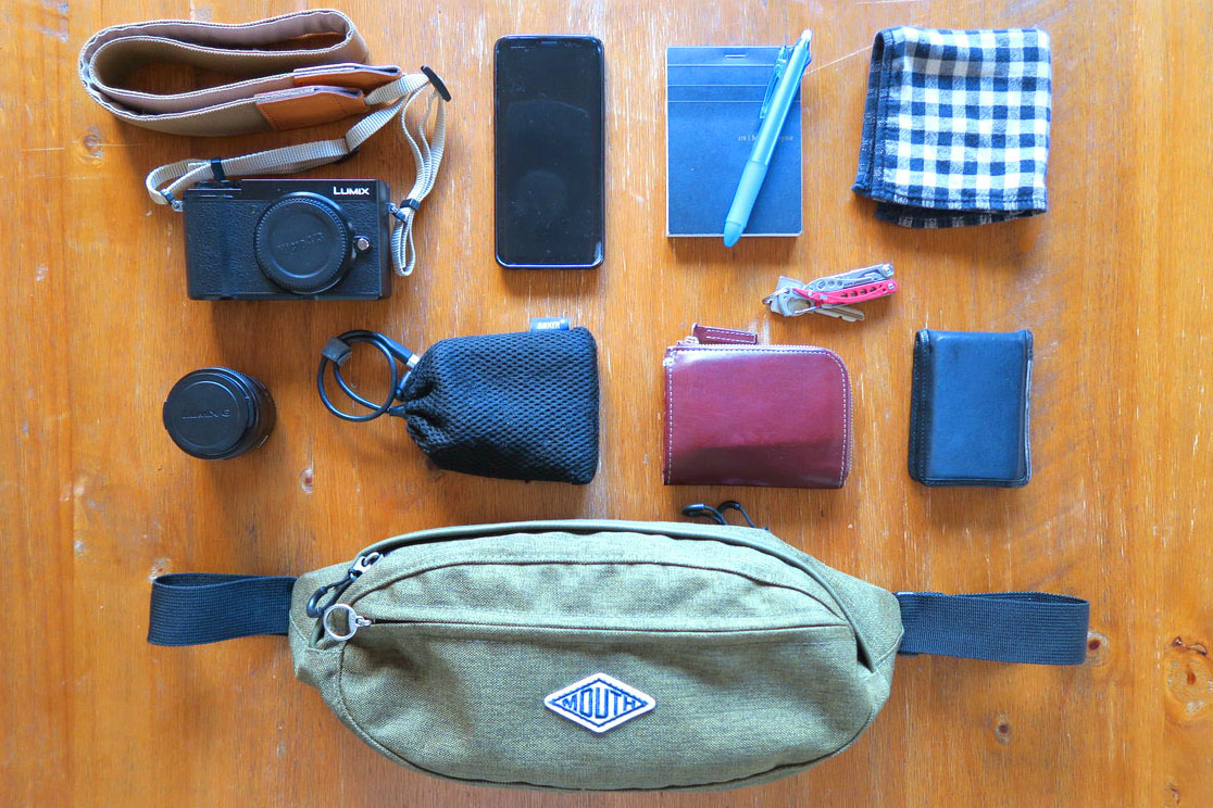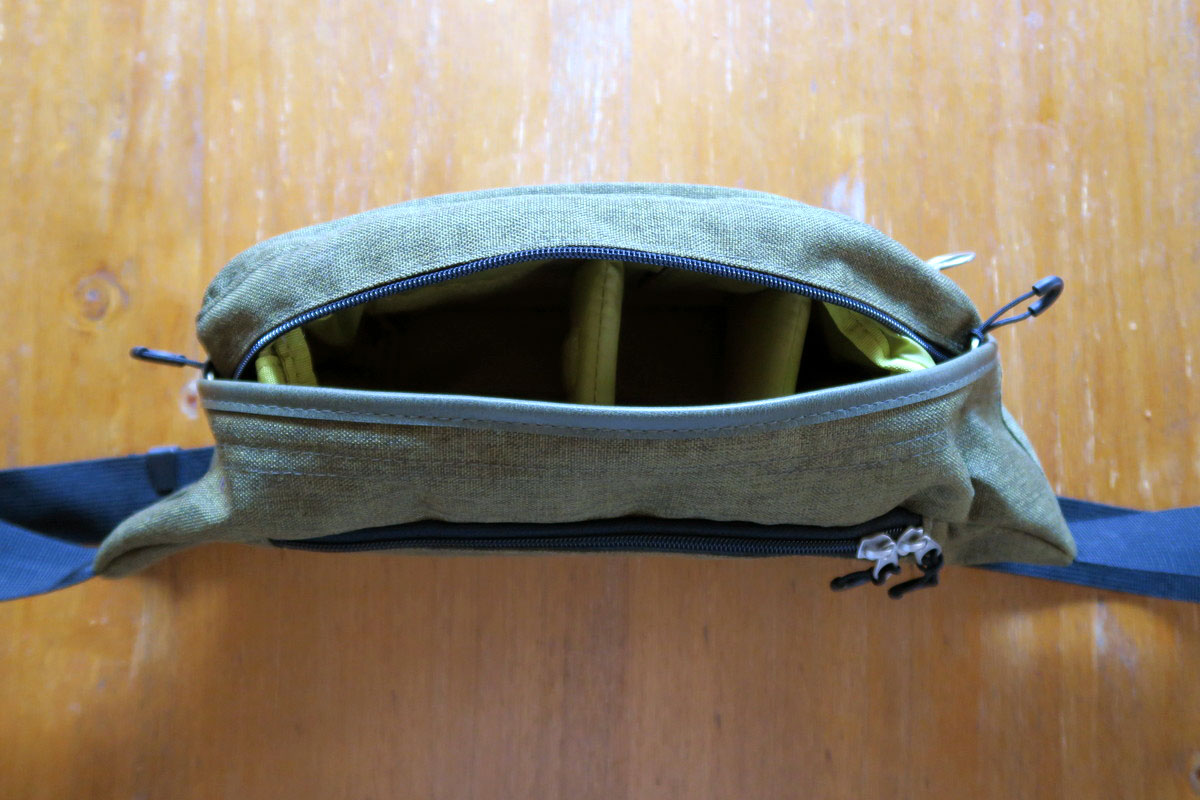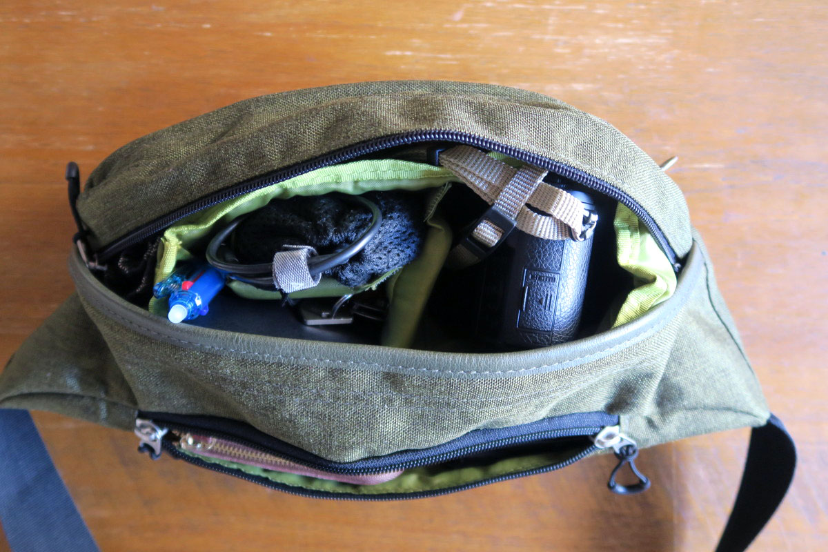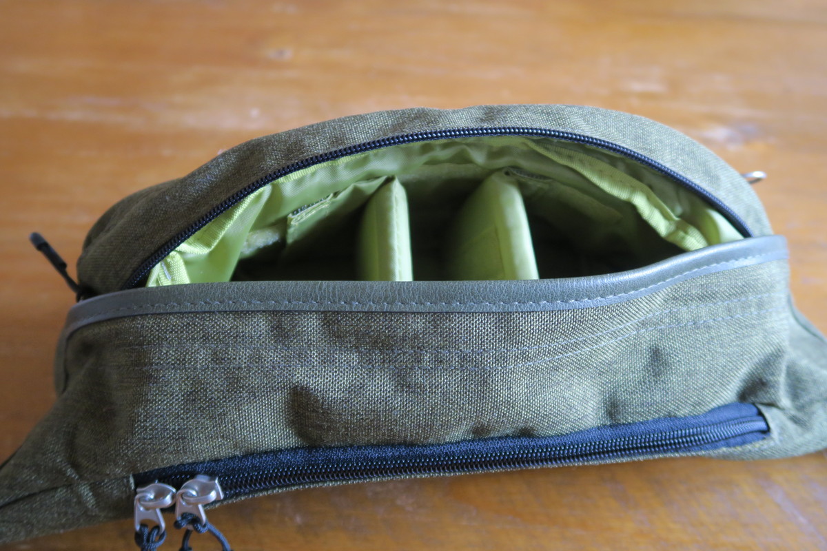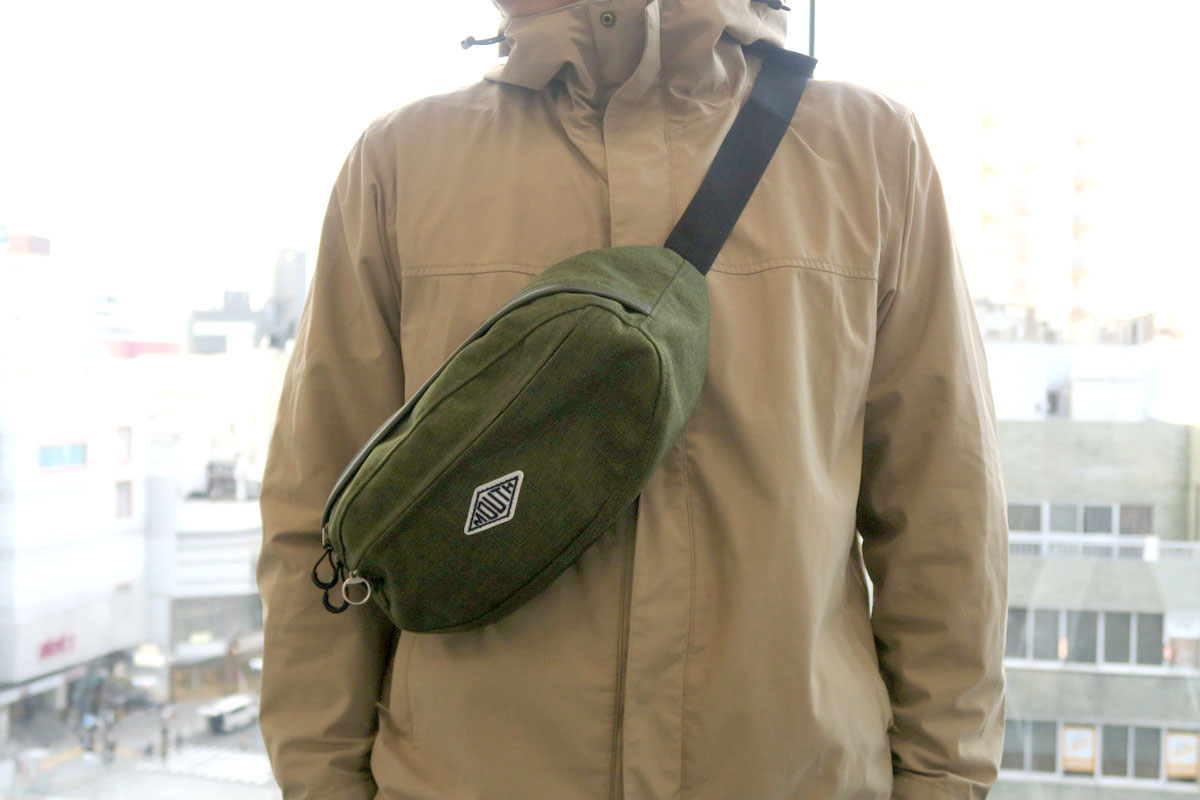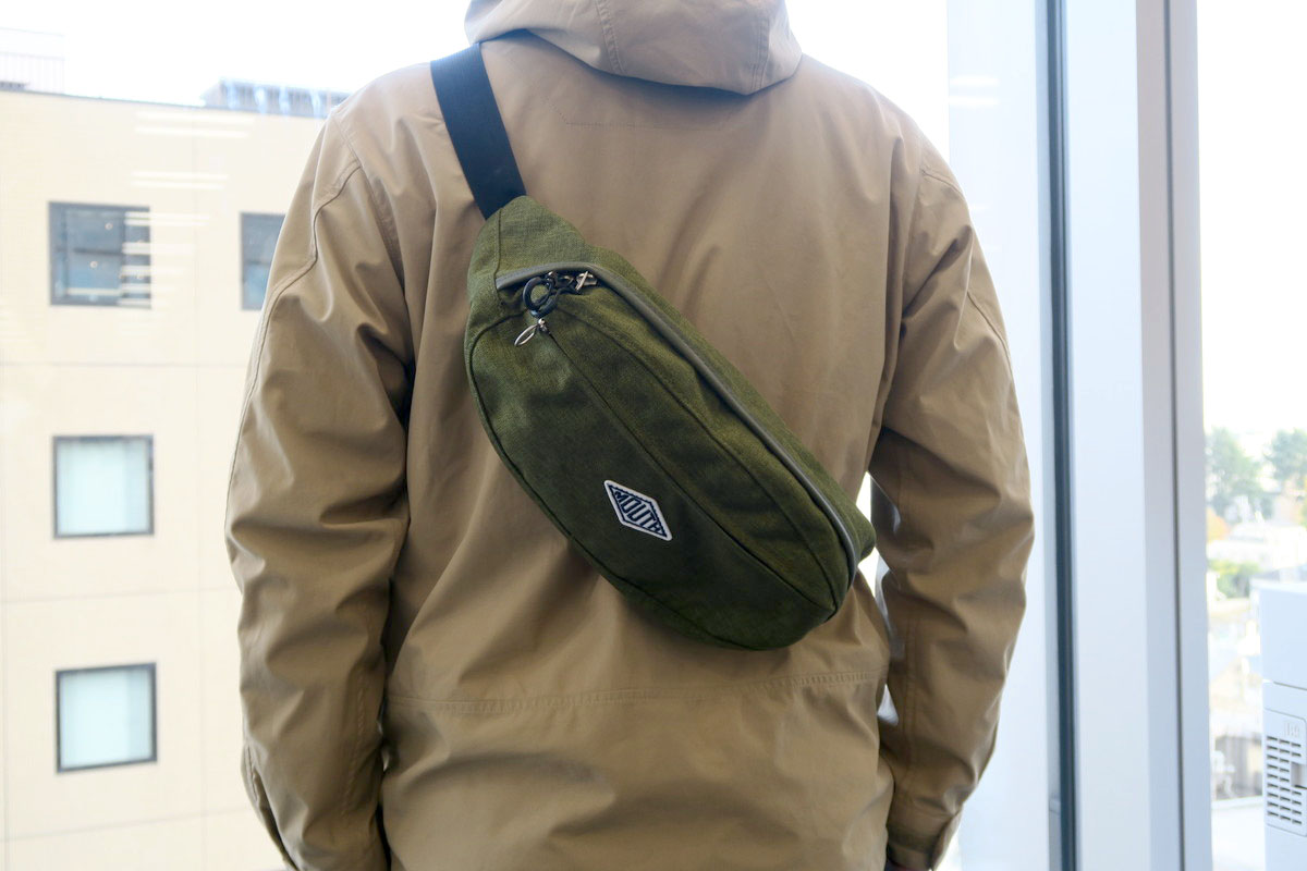 バッグ自体は、いわゆるボディバッグタイプです。ウエストに巻いてもいいのですが、やっぱりたすき掛けに持つ方がカメラも取り出しやすくていいのかなと。