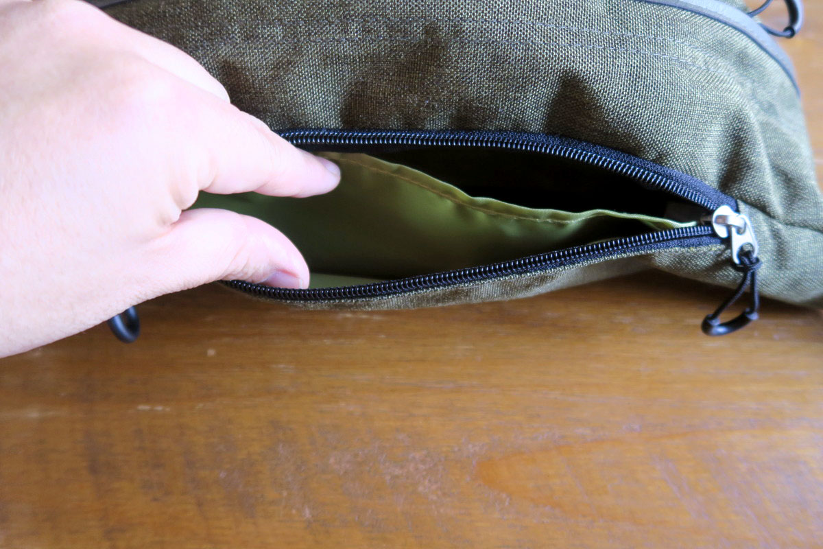 と、ここまでの説明でもうお分かりかと思いますが、これまでボディバッグでは見たことがない体側にあるファスナーの存在、これがこのバッグを購入しようと決めた最大の理由だったんです。